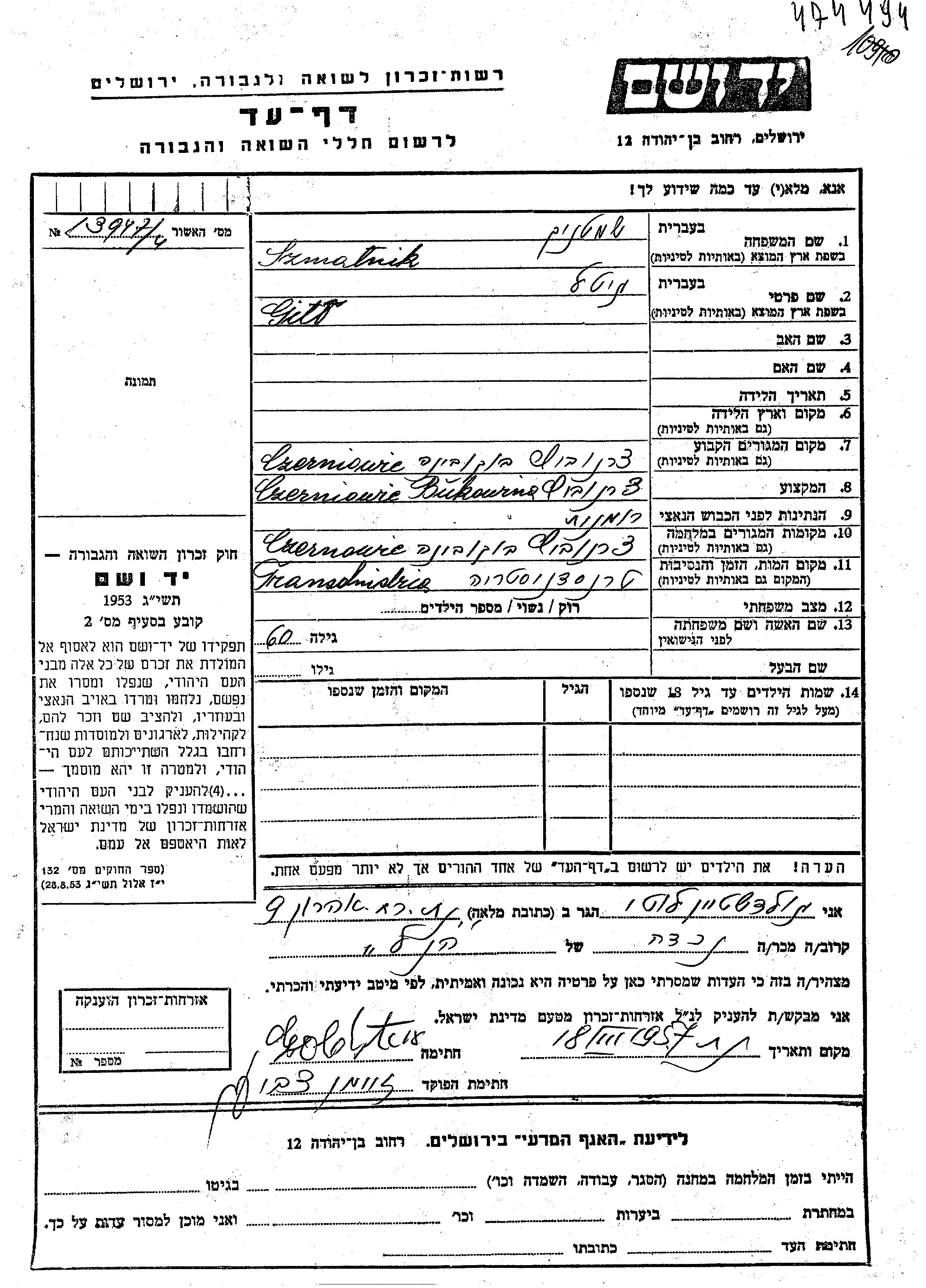 Yad Vashem - Pages of Testimony Names Memorial Collection