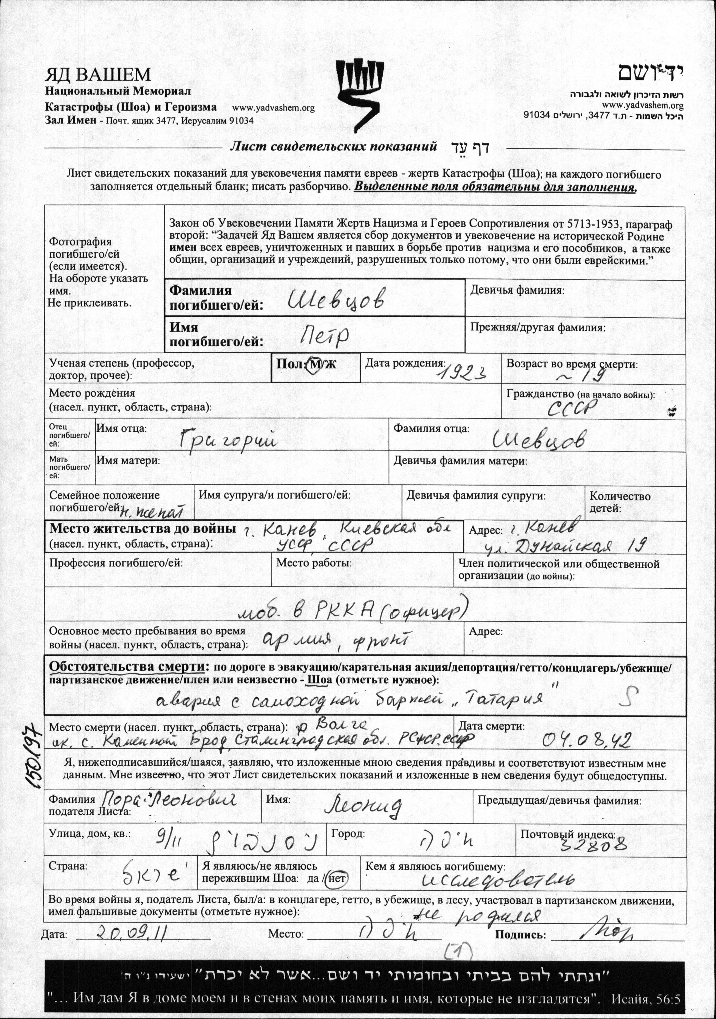 Search by last name of the submitter of the Page of Testimony, including diminutives or nicknames
