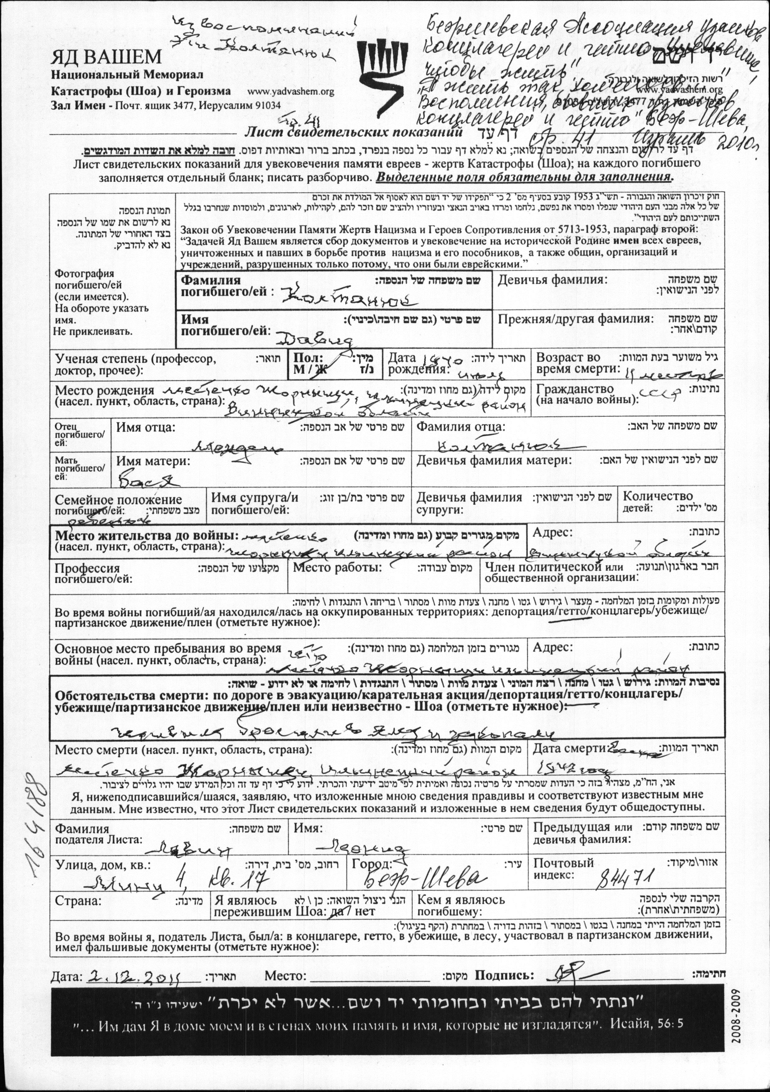 Koltanyuk David 1940 Zhornyshche, Ukraine (USSR) Page of Testimony