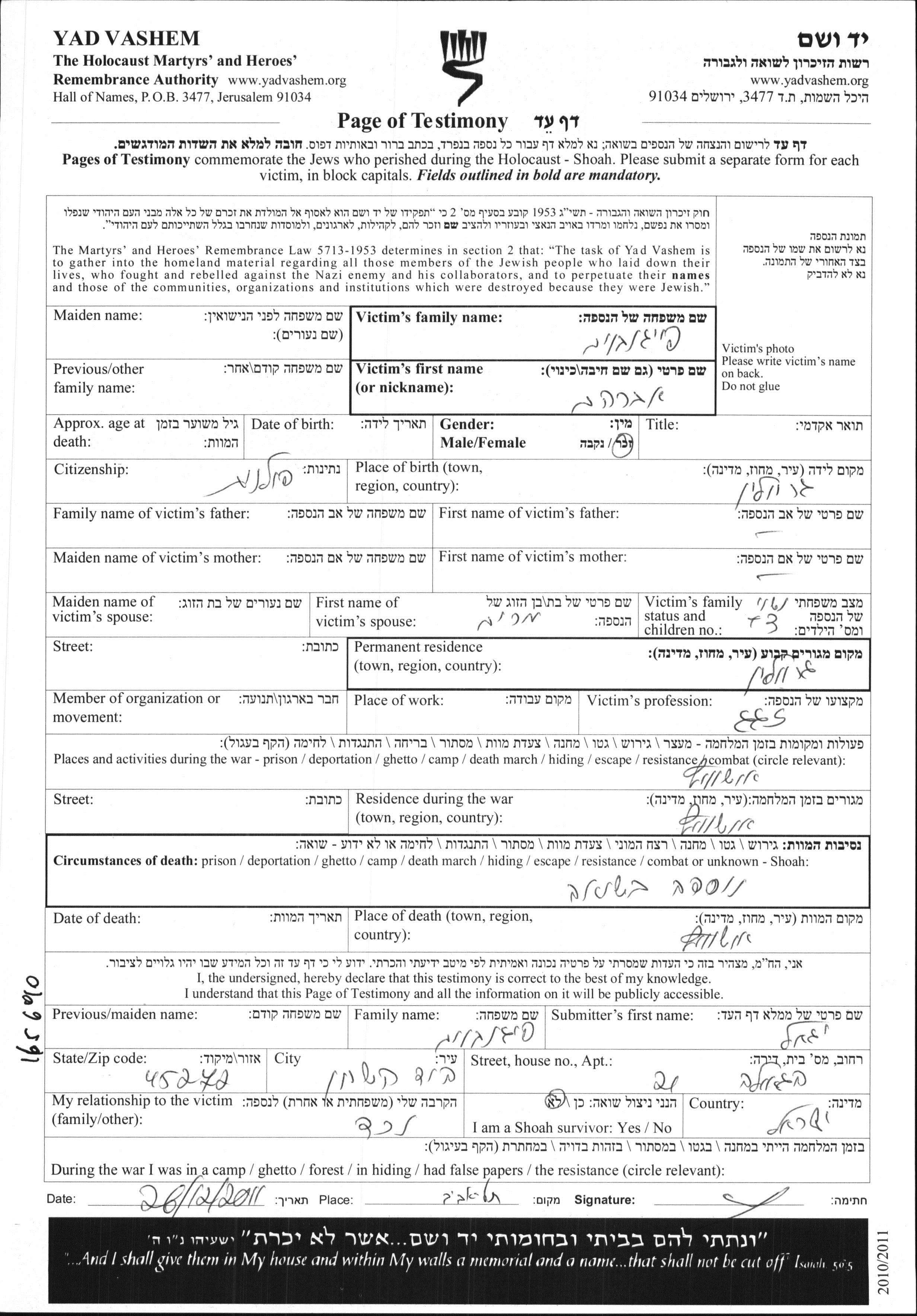 Avraham Feigenbaum was born in Garwolin, Poland. He was a glazier and married to Meirim. Prior to WWII he lived in Garwolin, Poland. During the war he was in Garwolin, Poland. Avraham was murdered in the Shoah. Place of death: Auschwitz, Poland.