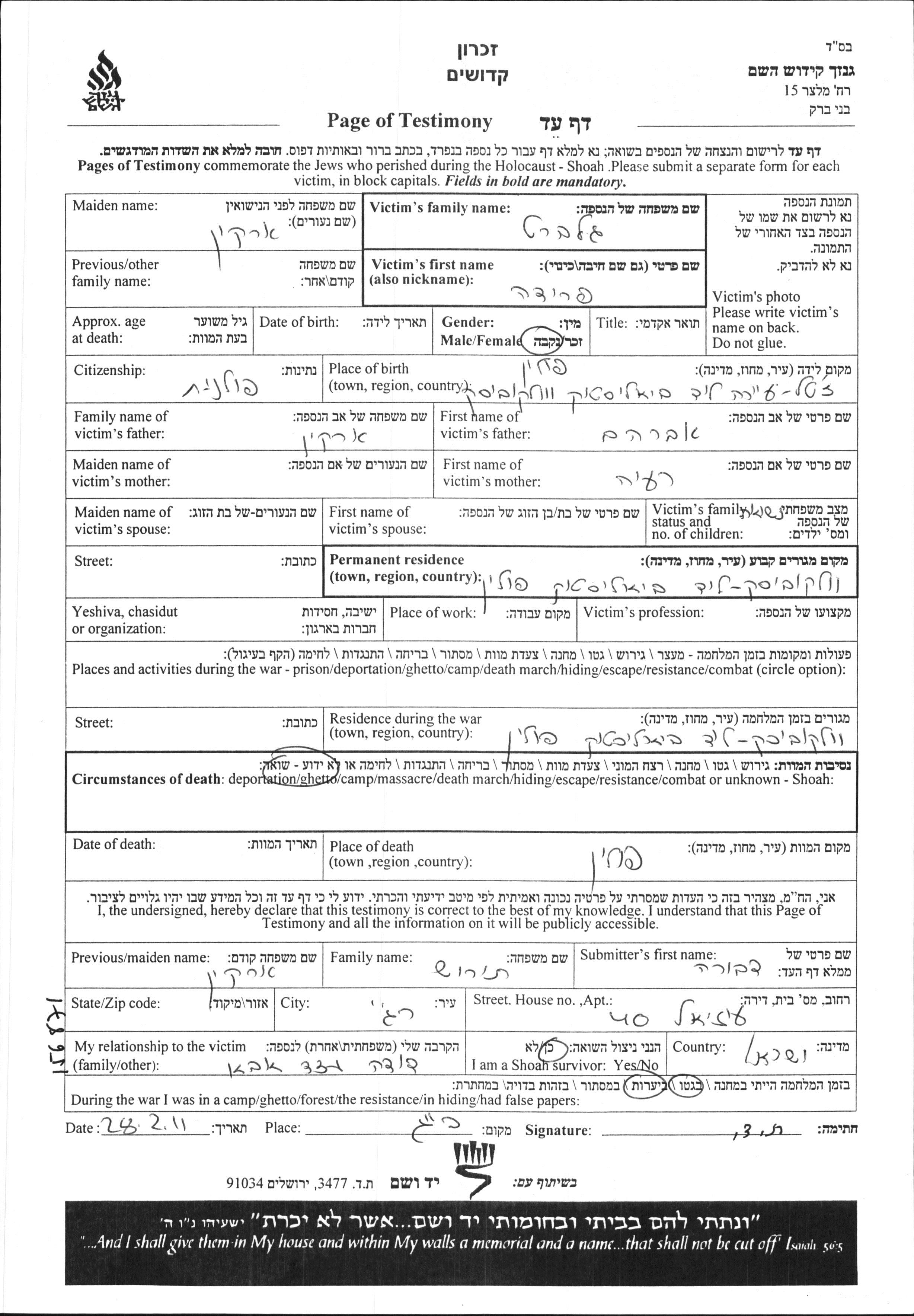 Yad Vashem - Pages of Testimony Names Memorial Collection