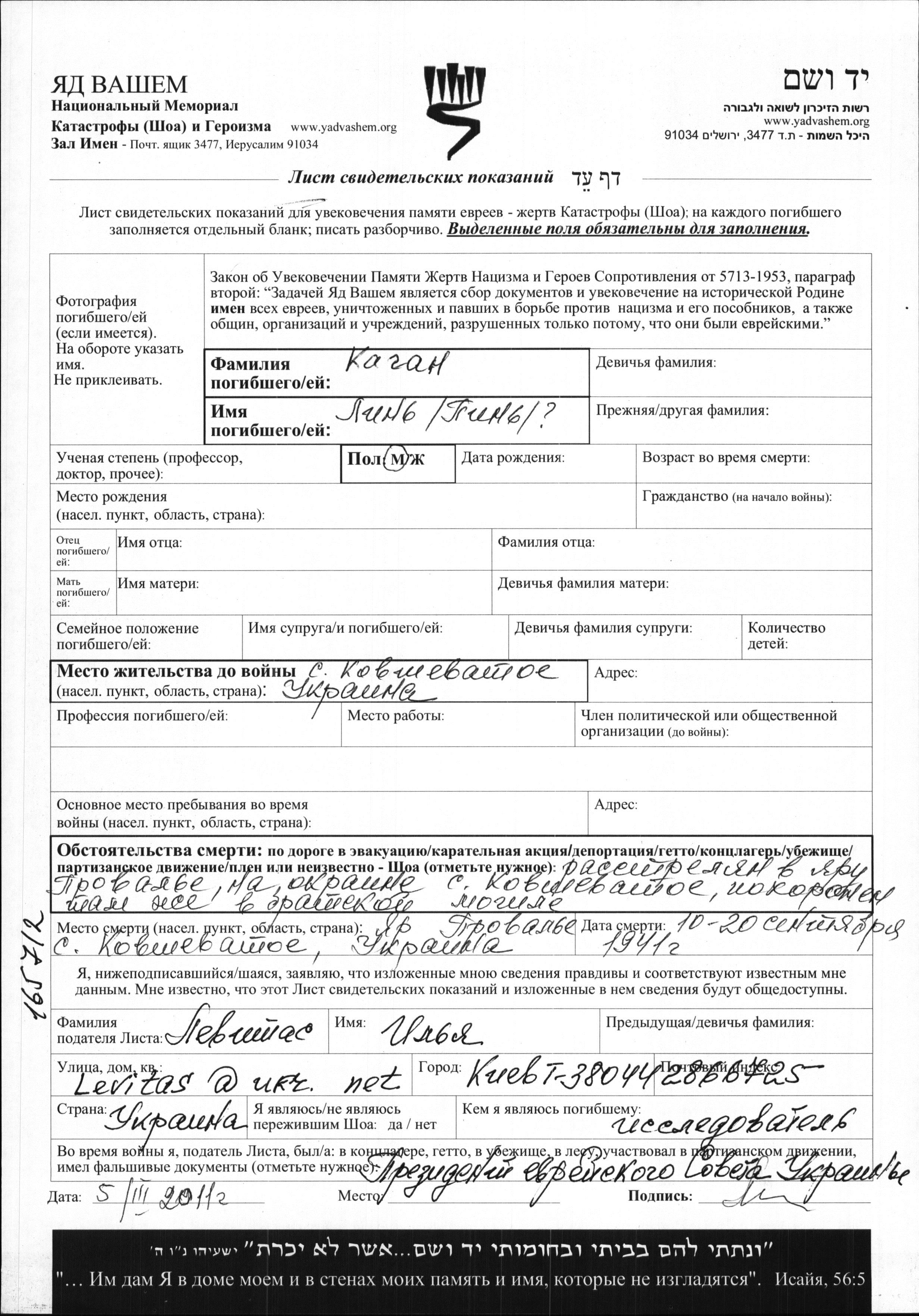 Search by last name of the submitter of the Page of Testimony, including diminutives or nicknames