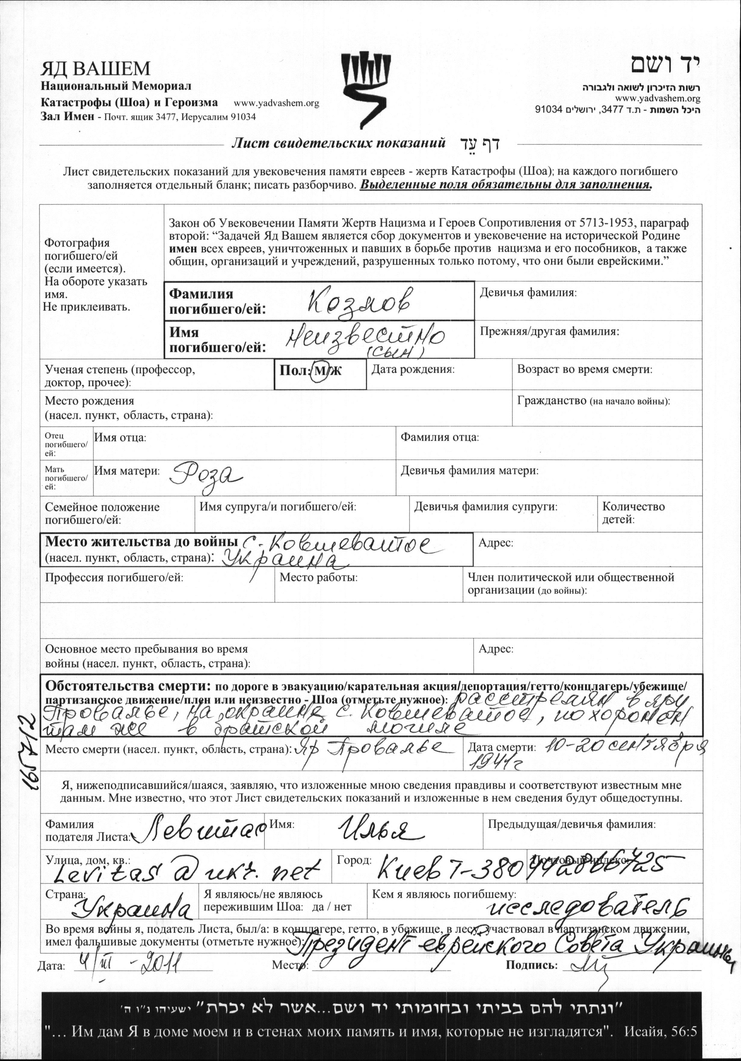 Search by last name of the submitter of the Page of Testimony, including diminutives or nicknames