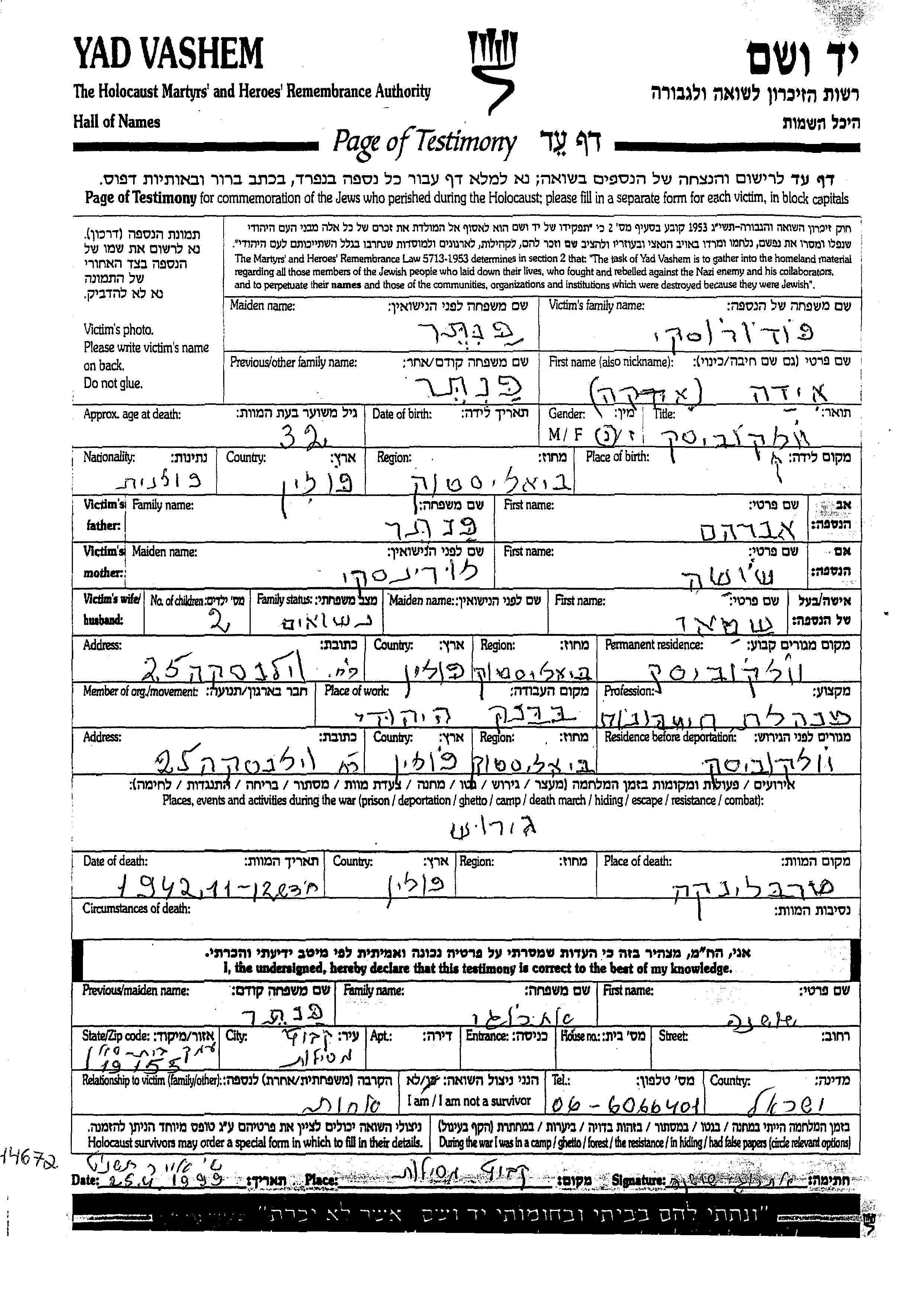 Yad Vashem - Pages of Testimony Names Memorial Collection