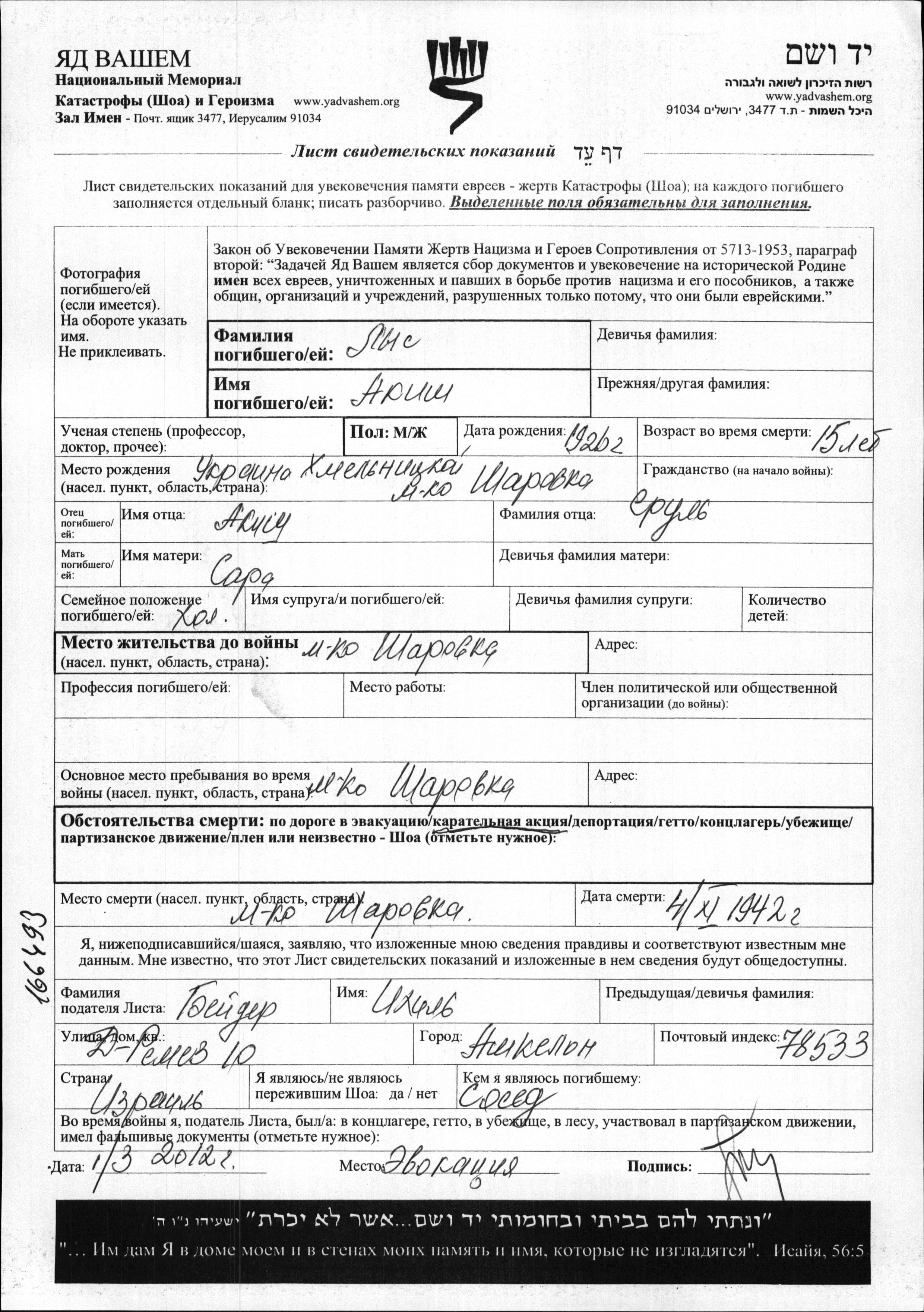 Yad Vashem - Pages of Testimony Names Memorial Collection