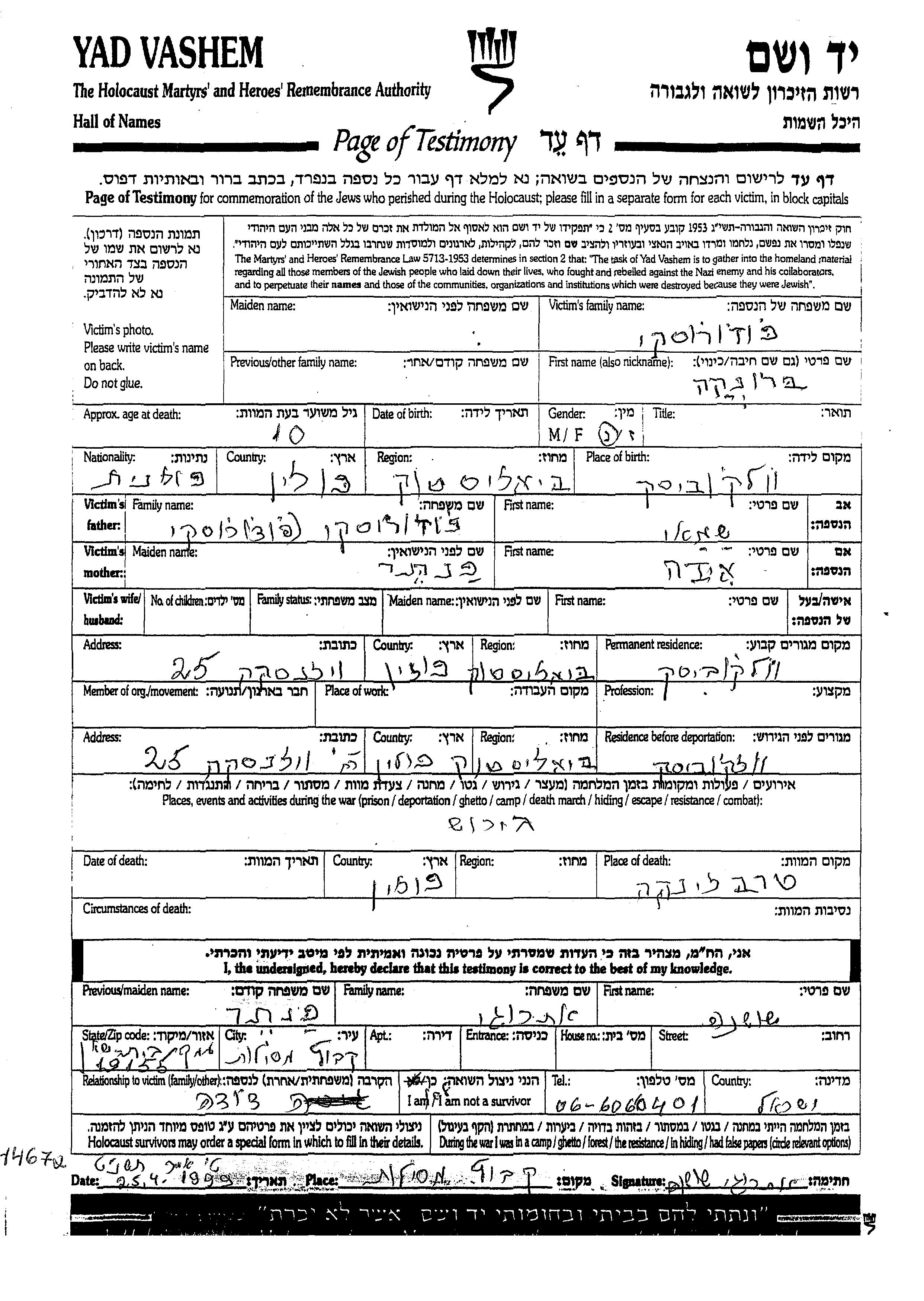Yad Vashem - Pages of Testimony Names Memorial Collection