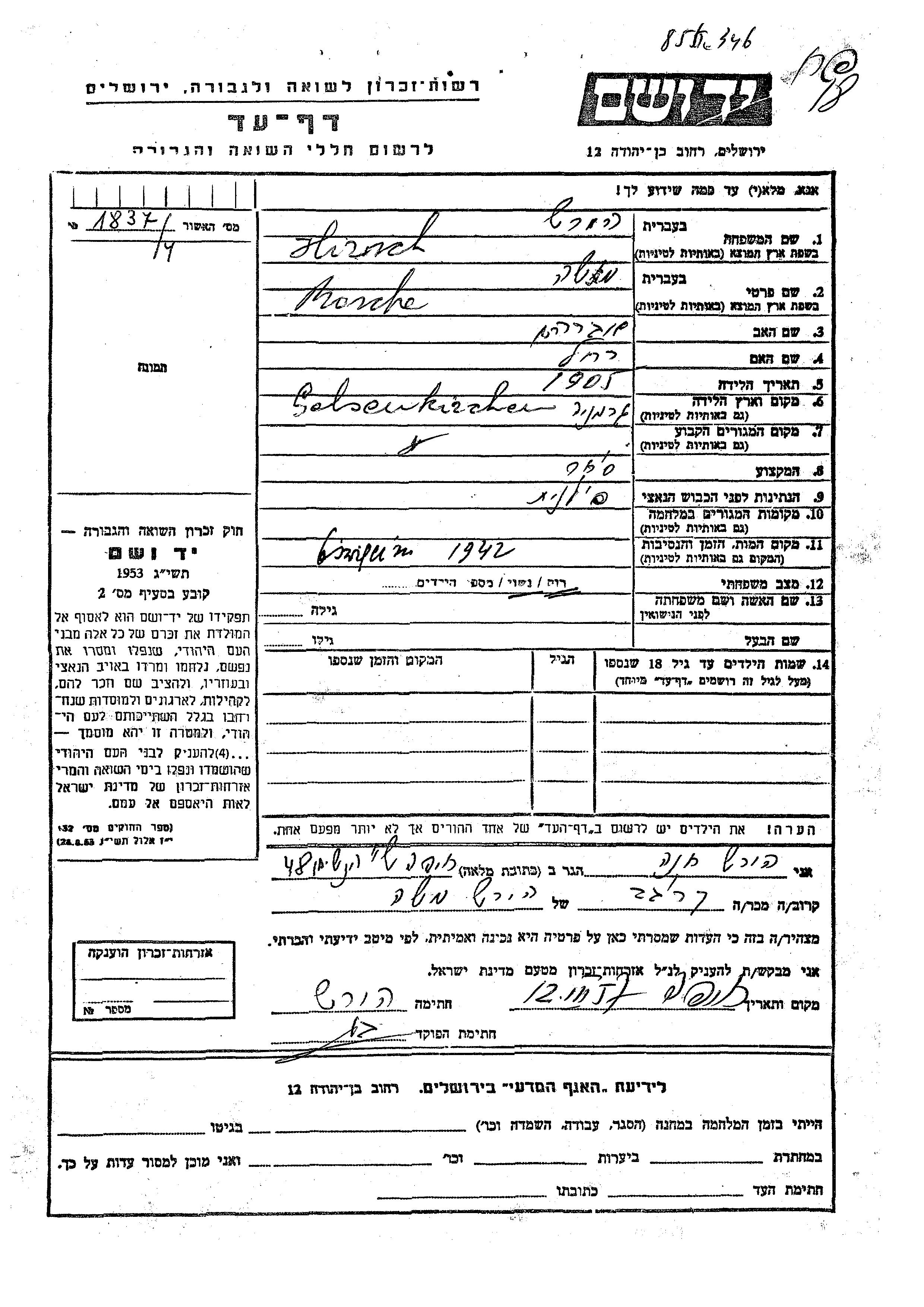 Yad Vashem - Pages of Testimony Names Memorial Collection