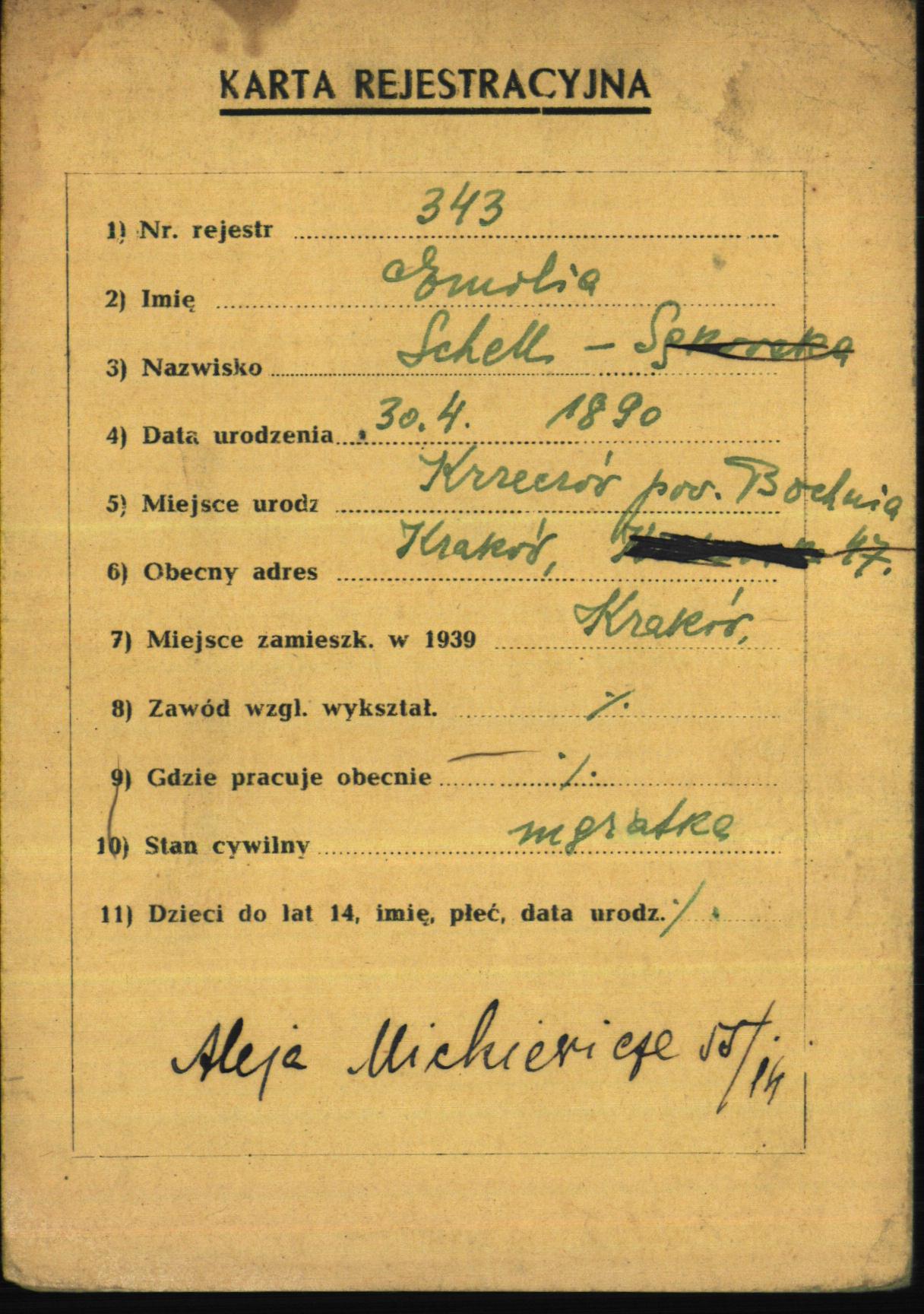 Emilia Schell Sekowska was born in Krzeczow, Poland, 1890. She was married. Prior to WWII she lived in Krakow, Poland.