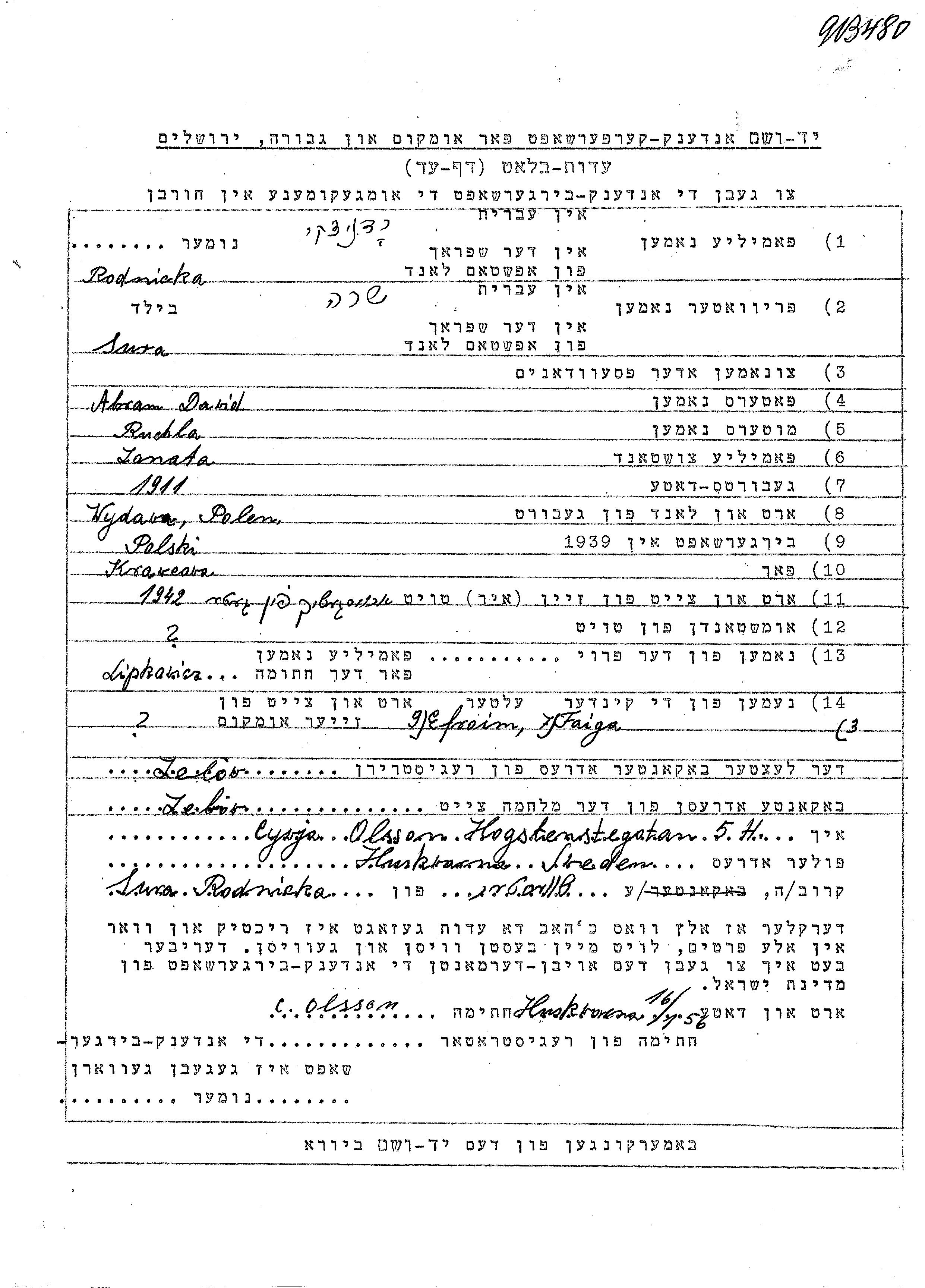 Rodnicki Sura 1911 Zelow, Poland Page of Testimony