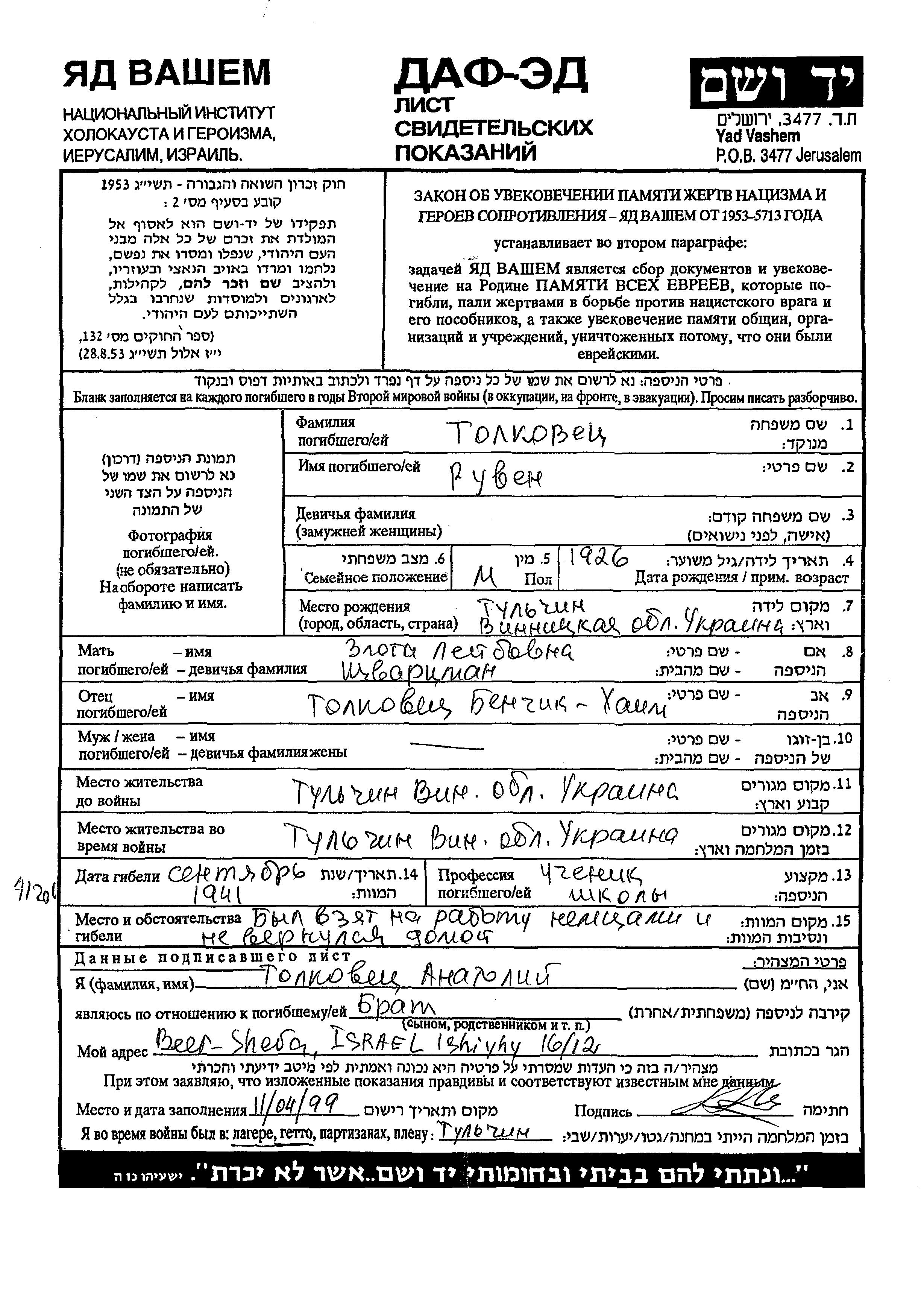 Search by last name of the submitter of the Page of Testimony, including diminutives or nicknames