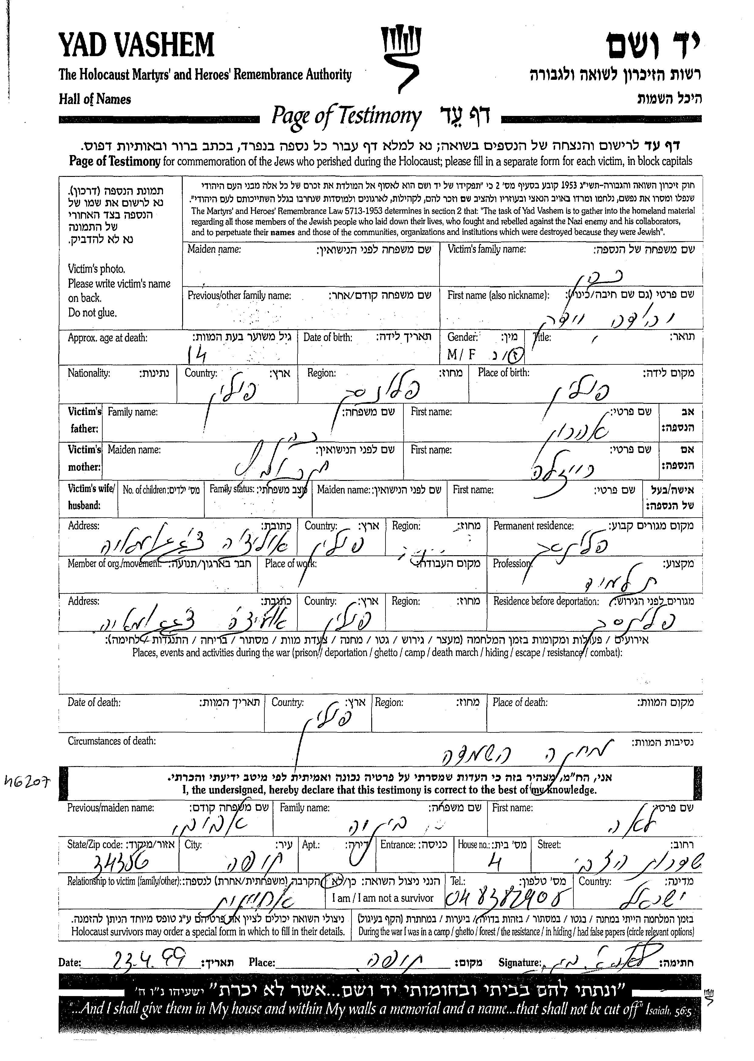 Yehuda Kohen was born in Plonsk, Poland to Aharon and Raizla. He was a pupil and child. Prior to WWII he lived in Plonsk, Poland. During the war he was in Plonsk, Poland. Yehuda was murdered in the Shoah. Place of death: Camp, Poland.