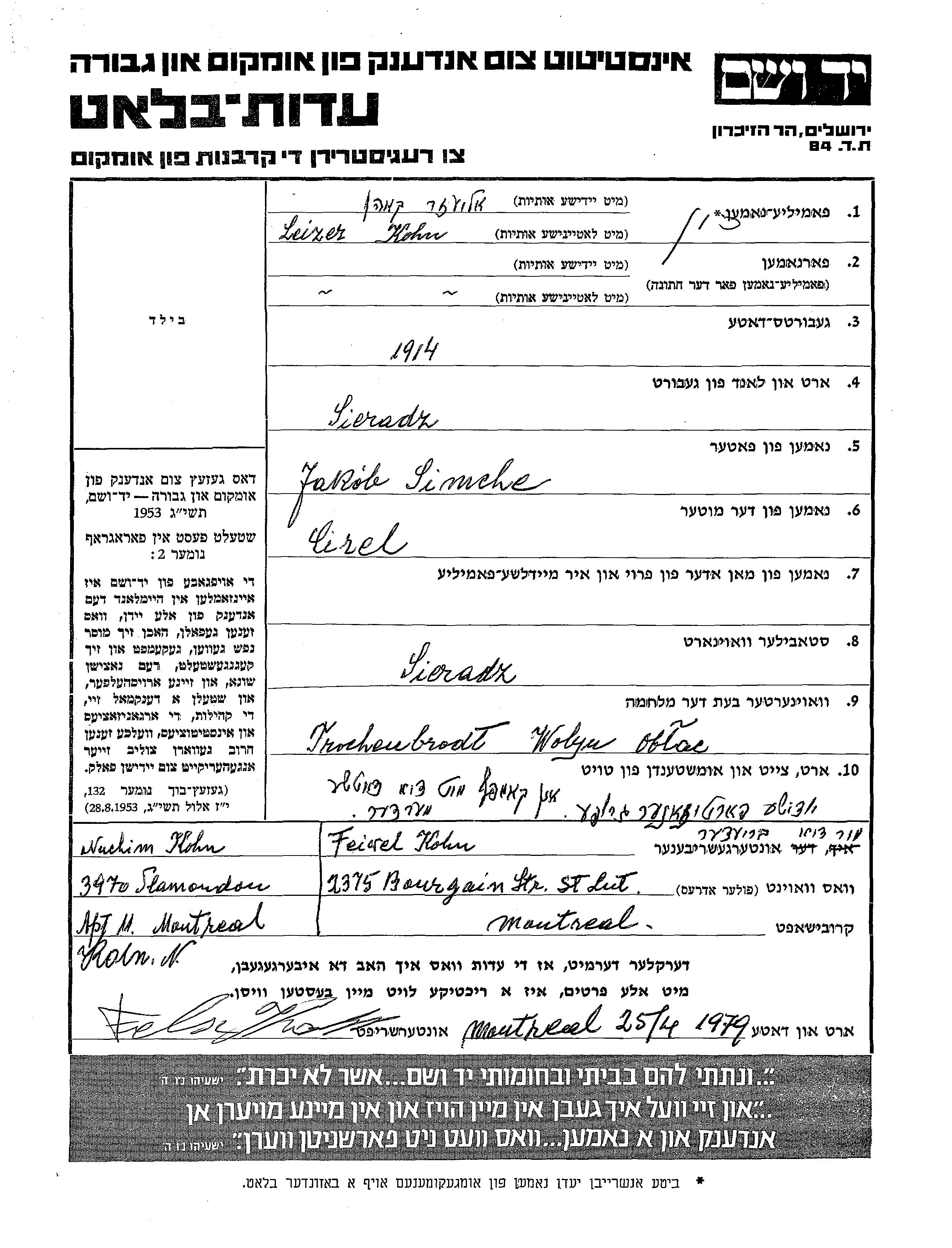 Kohn Eliezer 1914 Sieradz, Poland Page of Testimony