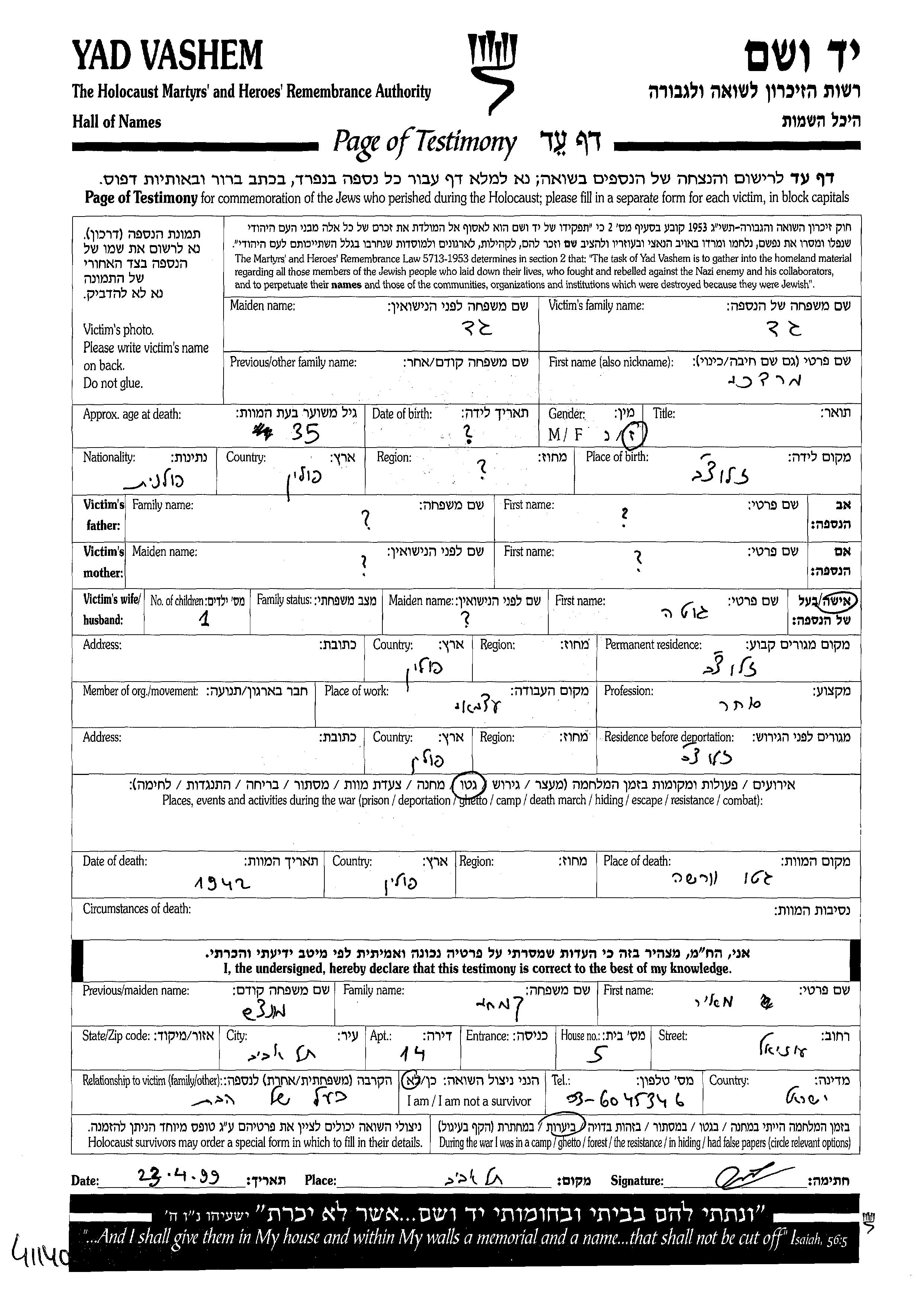 Yad Vashem - Pages of Testimony Names Memorial Collection