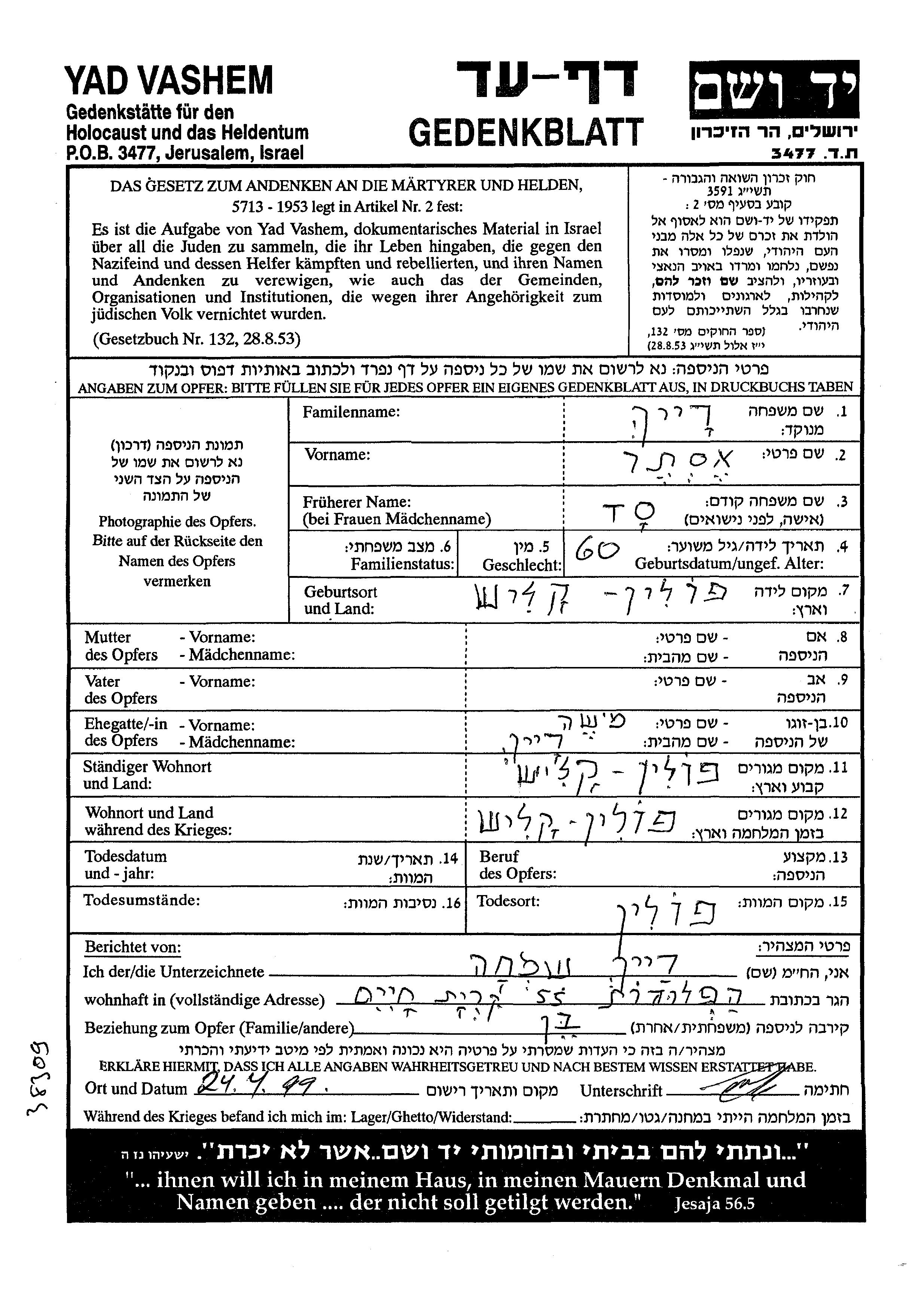 Yad Vashem - Pages of Testimony Names Memorial Collection