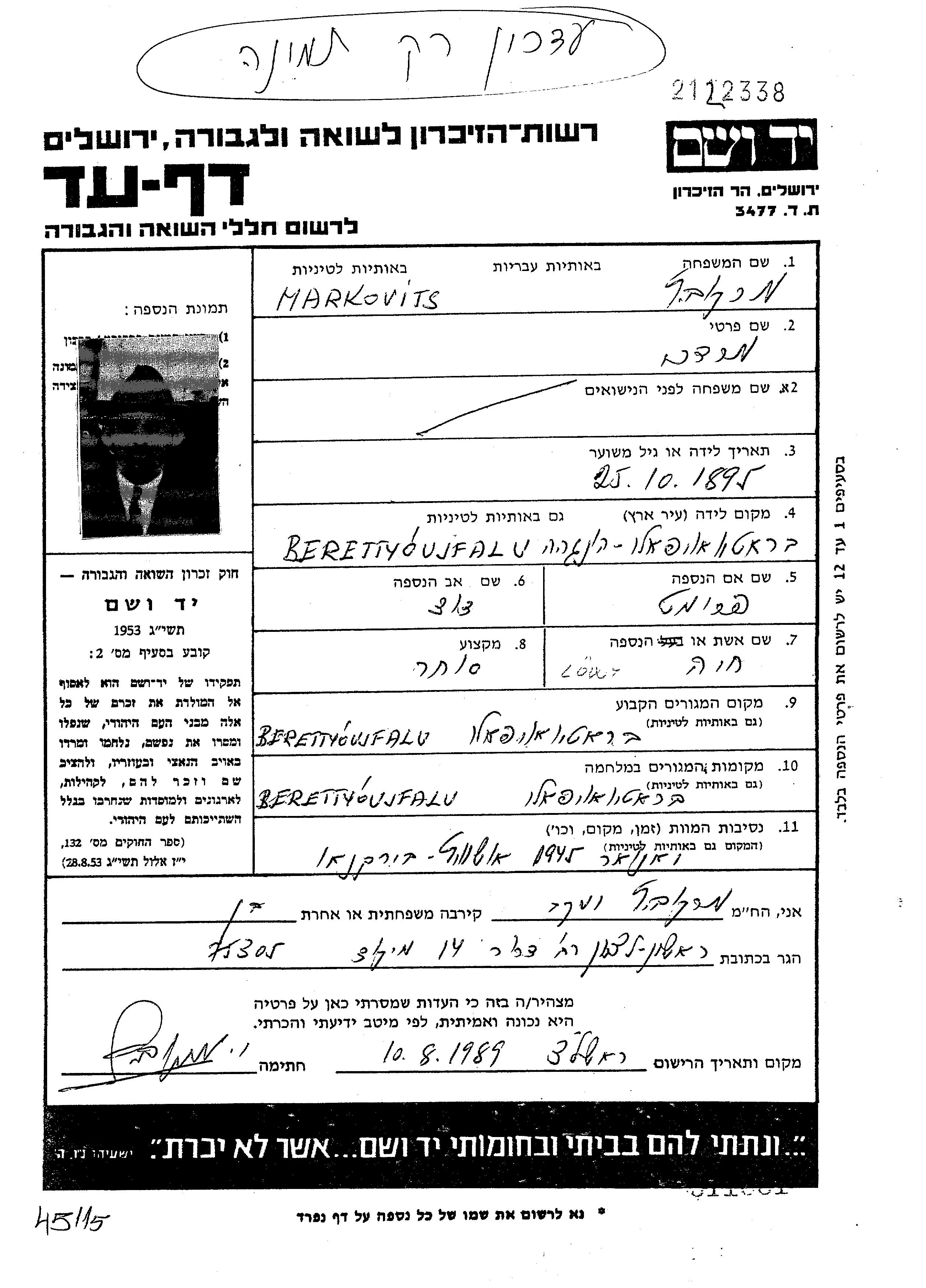 Search by last name of the submitter of the Page of Testimony, including diminutives or nicknames