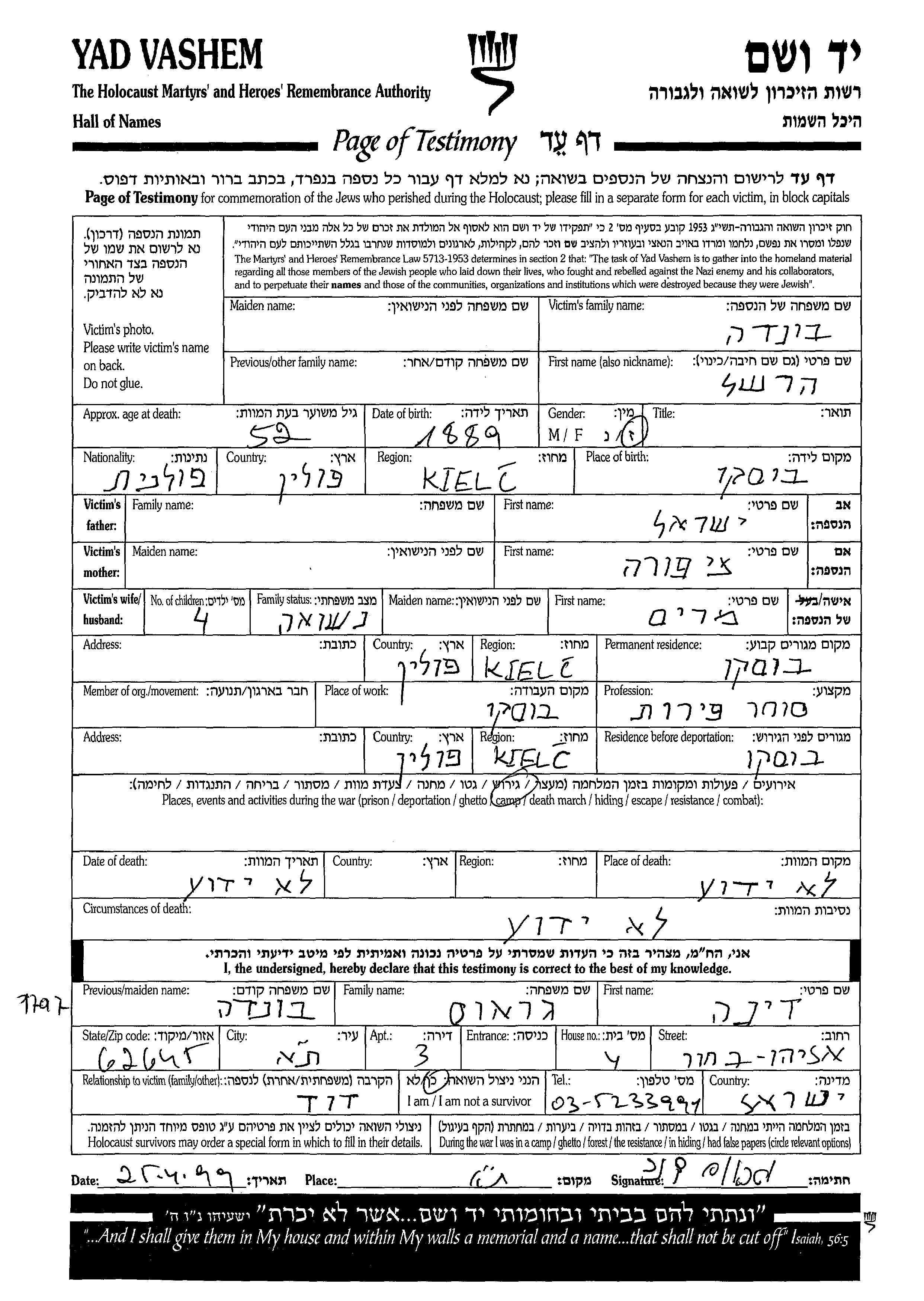 Yad Vashem - Pages of Testimony Names Memorial Collection