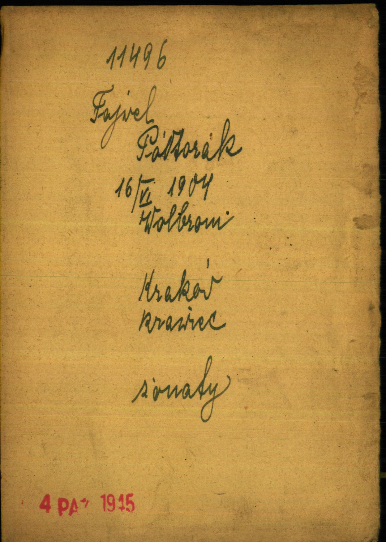 Fajwel Półtorak was born in Wolbrom, Poland, 1904. He was a tailor and married. Prior to WWII he lived in Krakow, Poland.