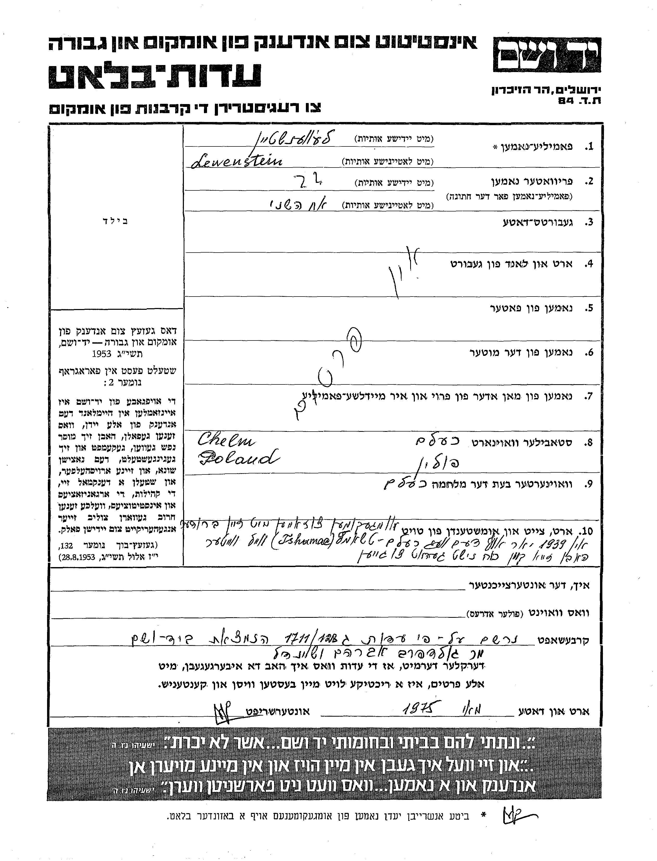 Yad Vashem - Pages of Testimony Names Memorial Collection