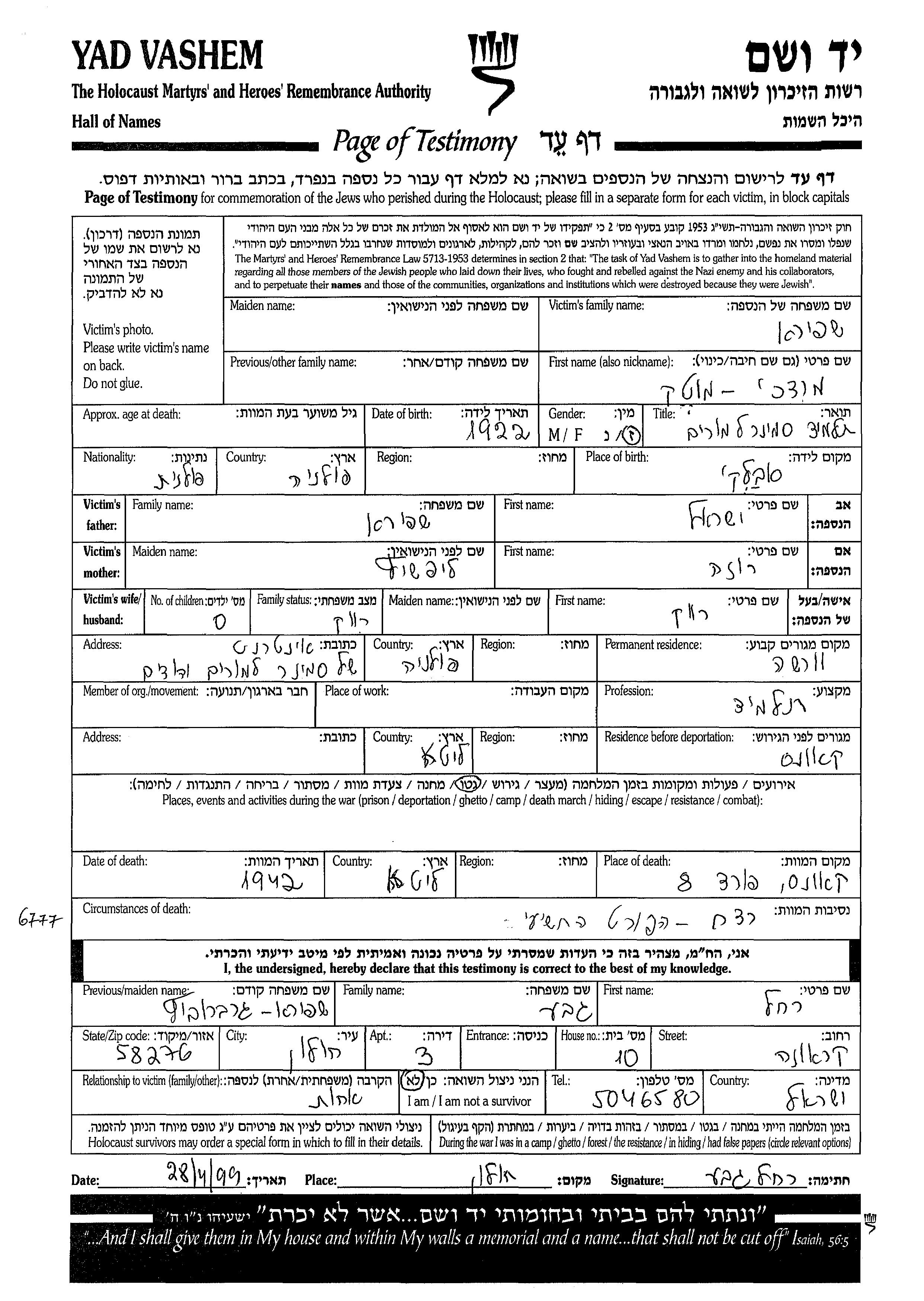Mordekhai Shapira was born in Suwalki, Poland, 1922 to Yisrael and Roza. He was a student in a teachers college and single. Prior to WWII he lived in Warszawa, Poland. During the war he was in Kaunas, Lithuania. Mordekhai was murdered in the Shoah. Place of death: Kaunas, Lithuania, 1942.