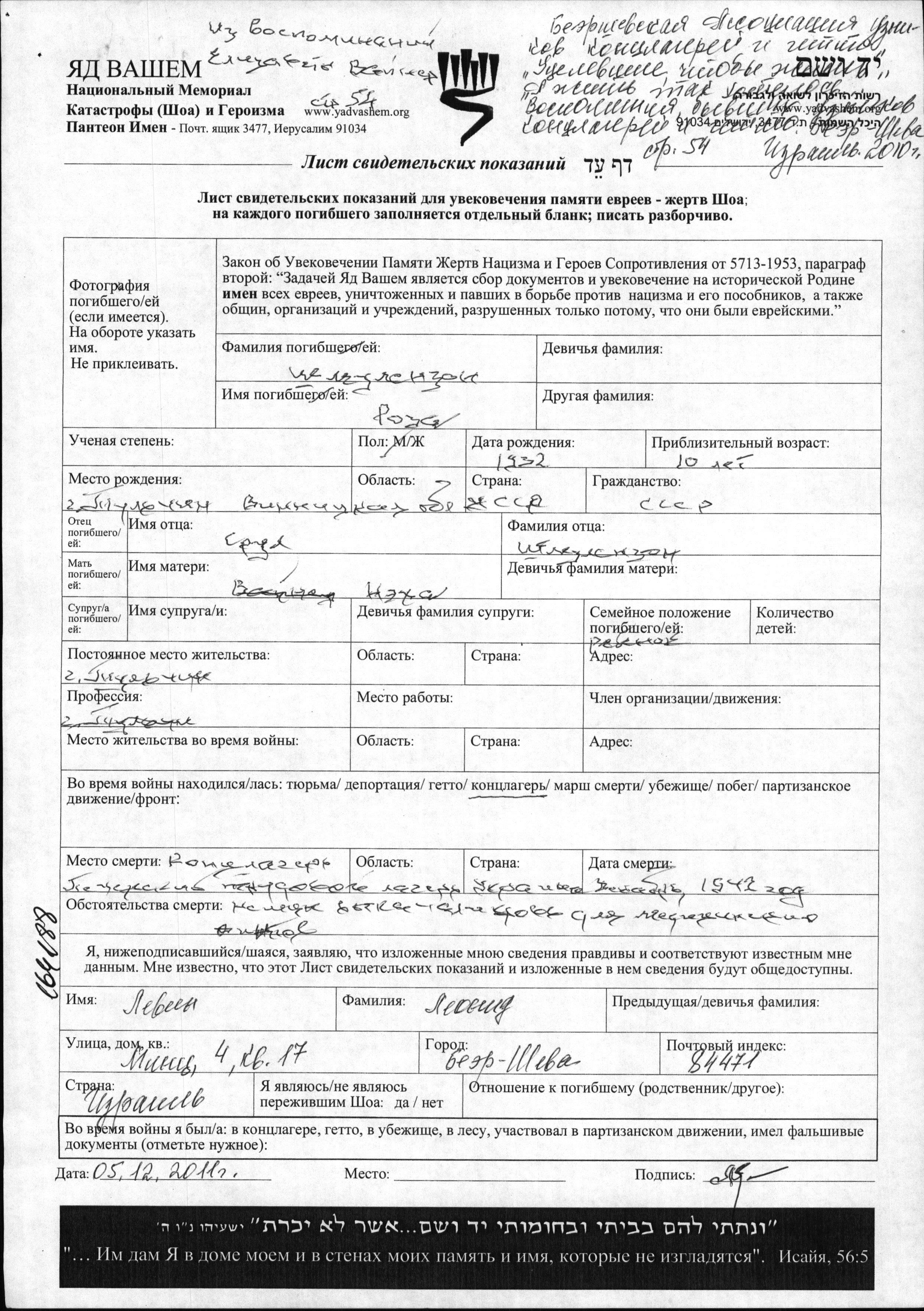 Yad Vashem - Pages of Testimony Names Memorial Collection