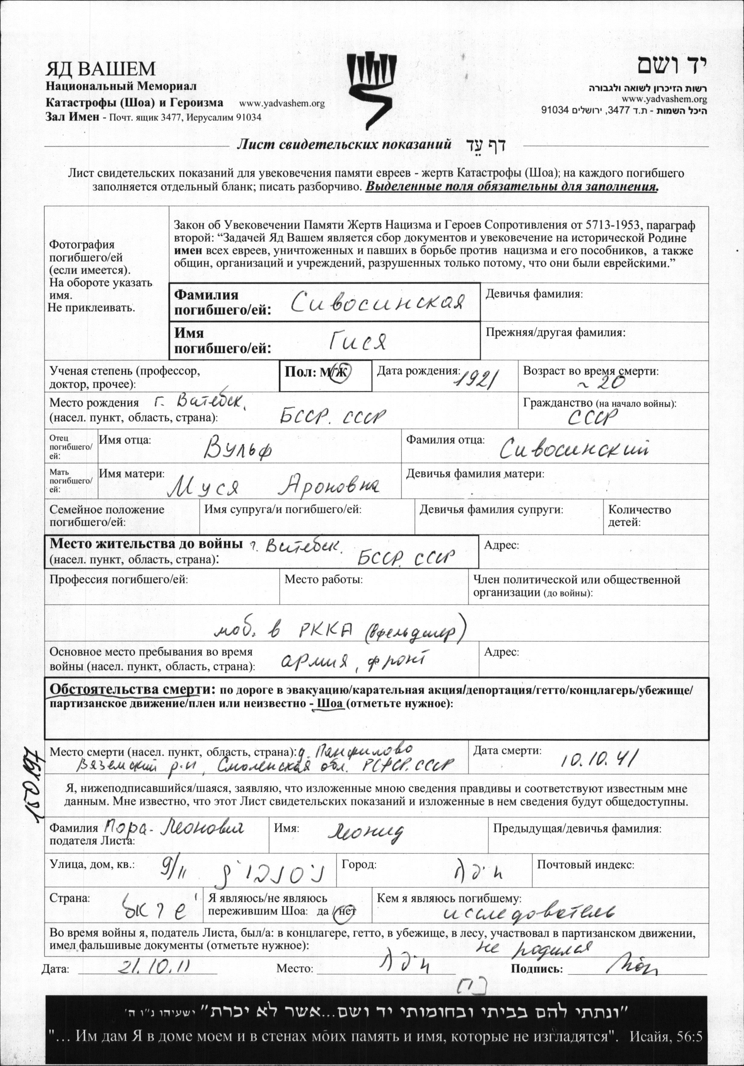 Search by last name of the submitter of the Page of Testimony, including diminutives or nicknames
