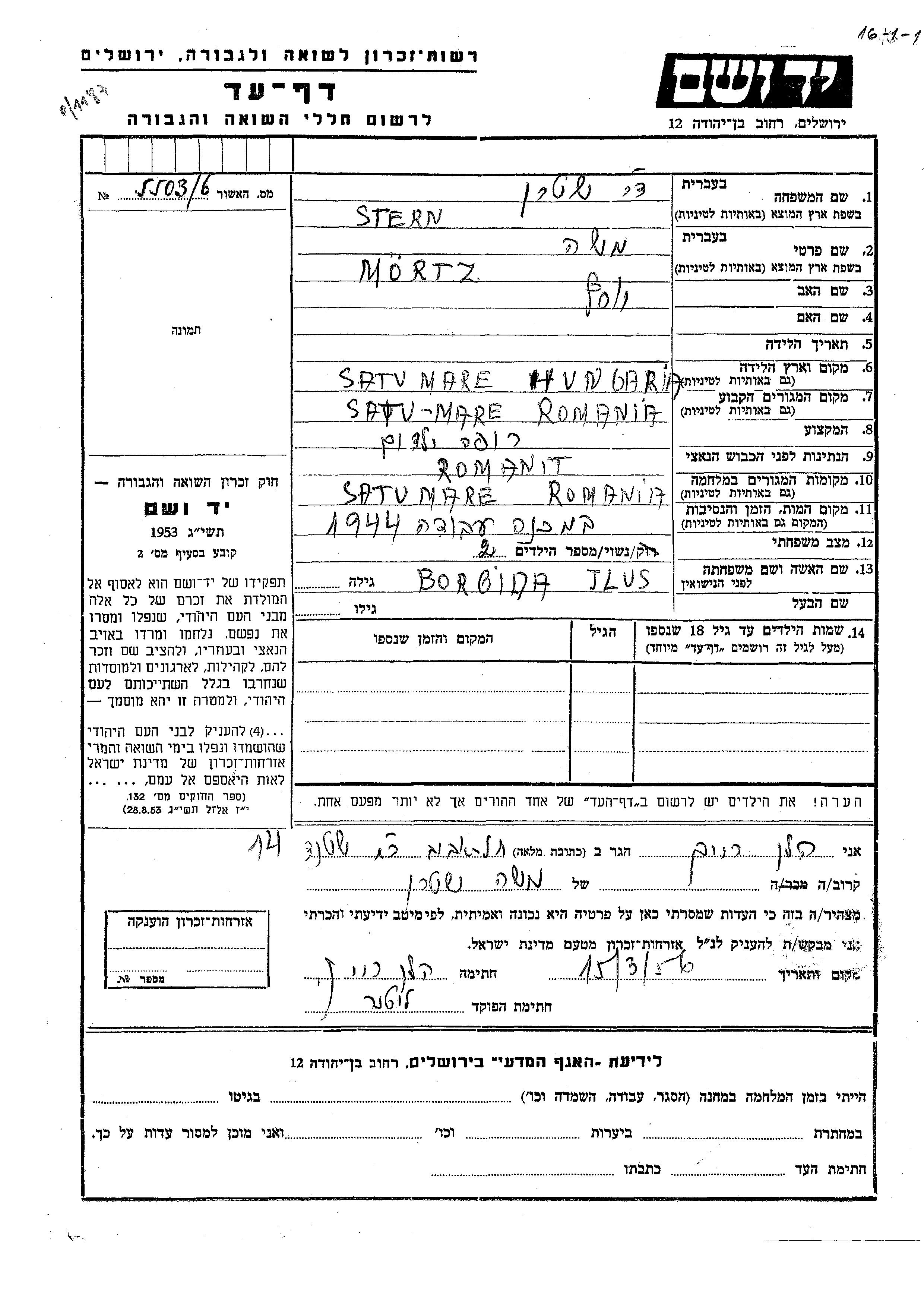 Stern Moertz Moshe Satu Mare, Romania Page of Testimony