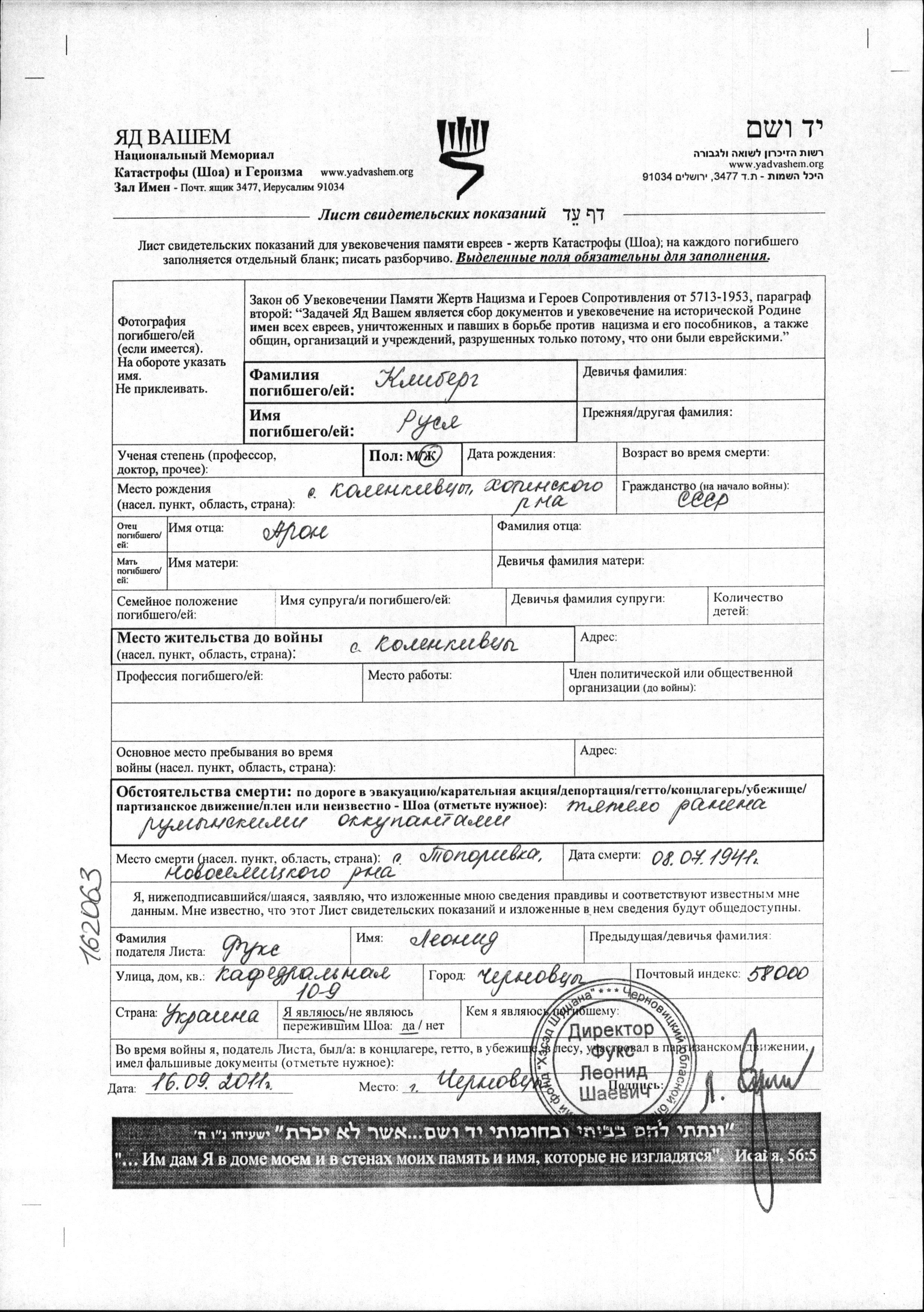 During the Shoah, Jews were murdered in a variety of ways, among them gassing, shooting, burning, drowning or burial alive, exhaustion through forced labor, starvation, epidemic diseases, deprivation of medical care and minimal hygienic conditions, and more. Some Jews took their own lives in order to escape arrest and further persecution, or to end their hopeless, relentless suffering. Tens of thousands of Jewish soldiers serving in the Soviet army and captured as POWs were selected as Jews and murdered. Many were registered as “missing in action”.