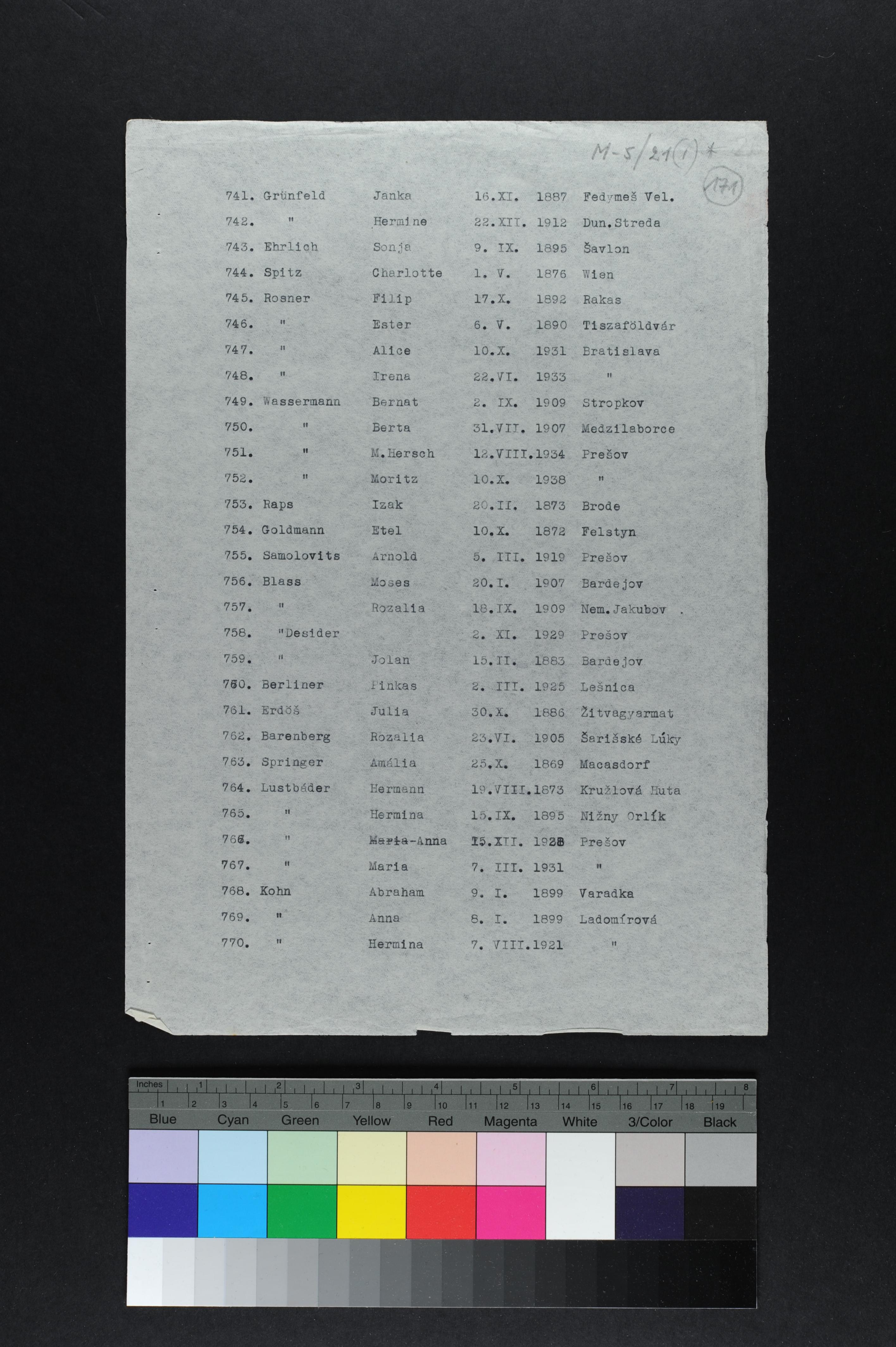 List of Jews from Presov and settlements in the Presov vicinity deported to the Lublin region, 12/05/1942