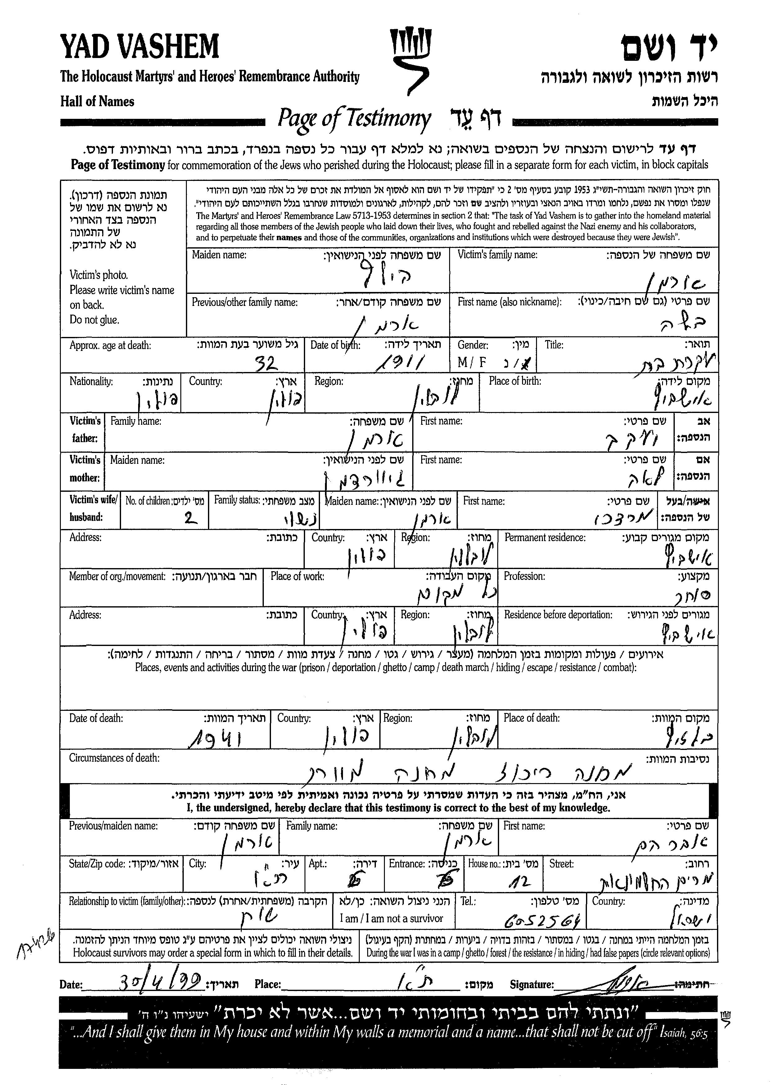 Yad Vashem - Pages of Testimony Names Memorial Collection