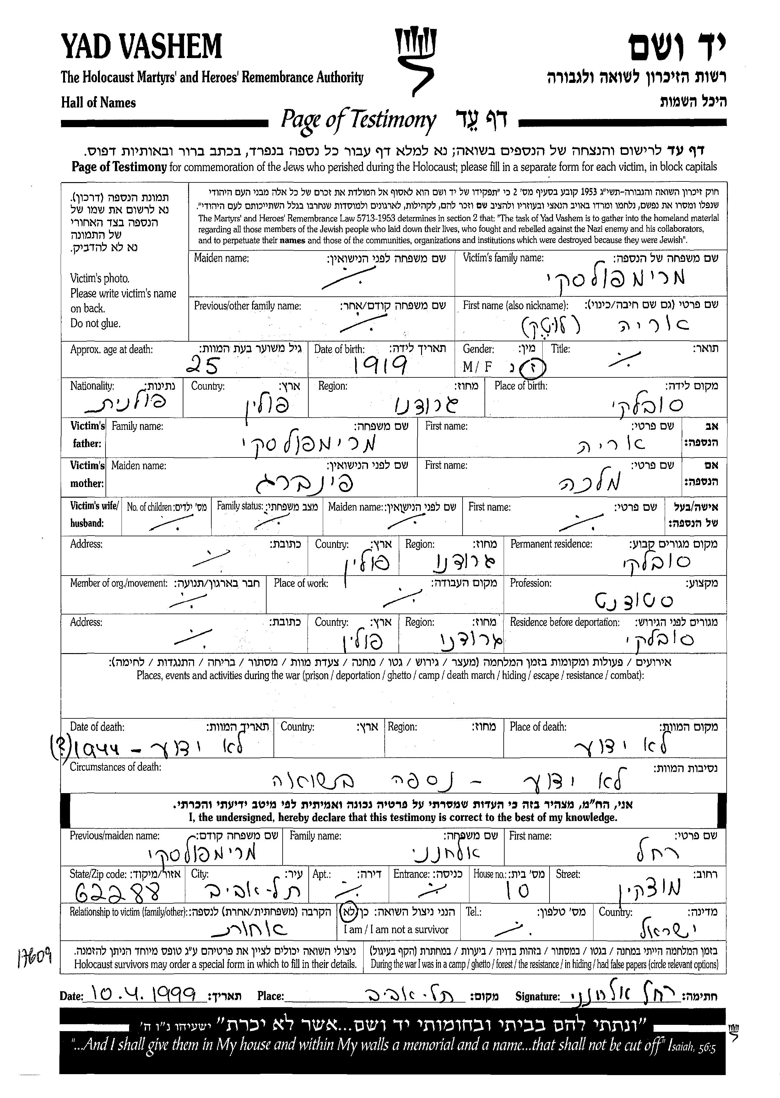 Arie Luttek Mariampolski was born in Suwalki, Poland, 1919 to Arie and Malka. He was a student. Prior to WWII he lived in Suwalki, Poland. During the war he was in Suwalki, Poland. Arie Luttek was murdered in the Shoah. Place of death: unknown, 1944.