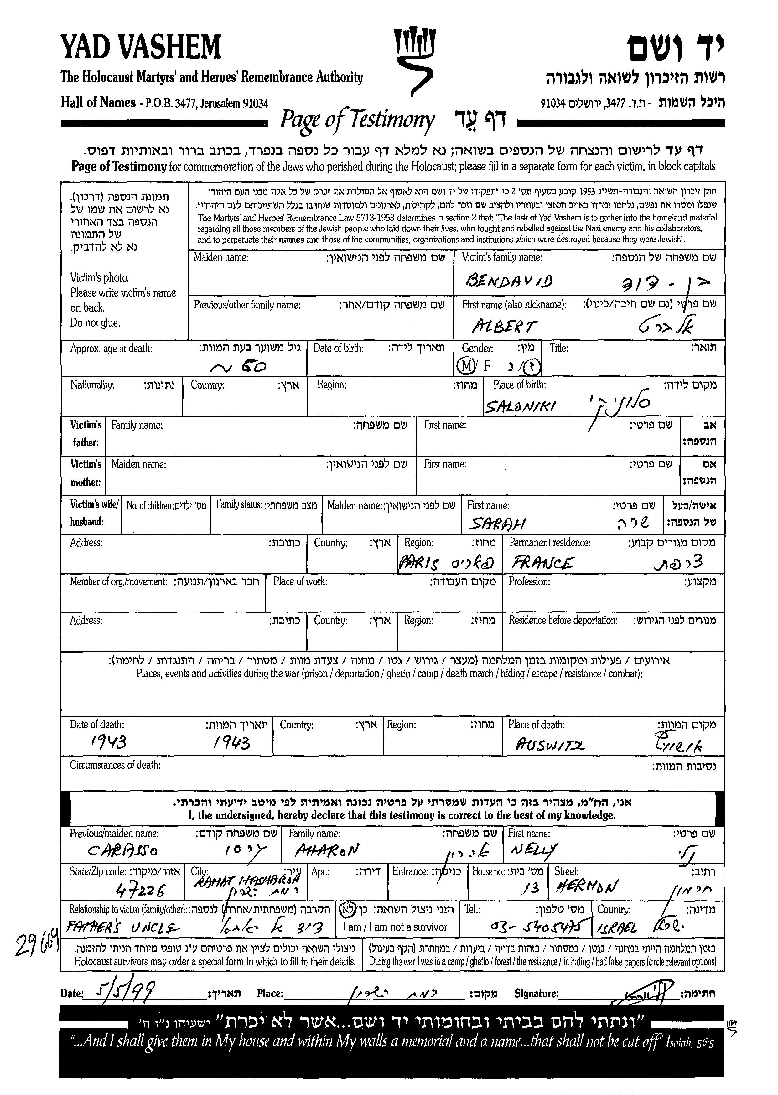 Search by last name of the submitter of the Page of Testimony, including diminutives or nicknames