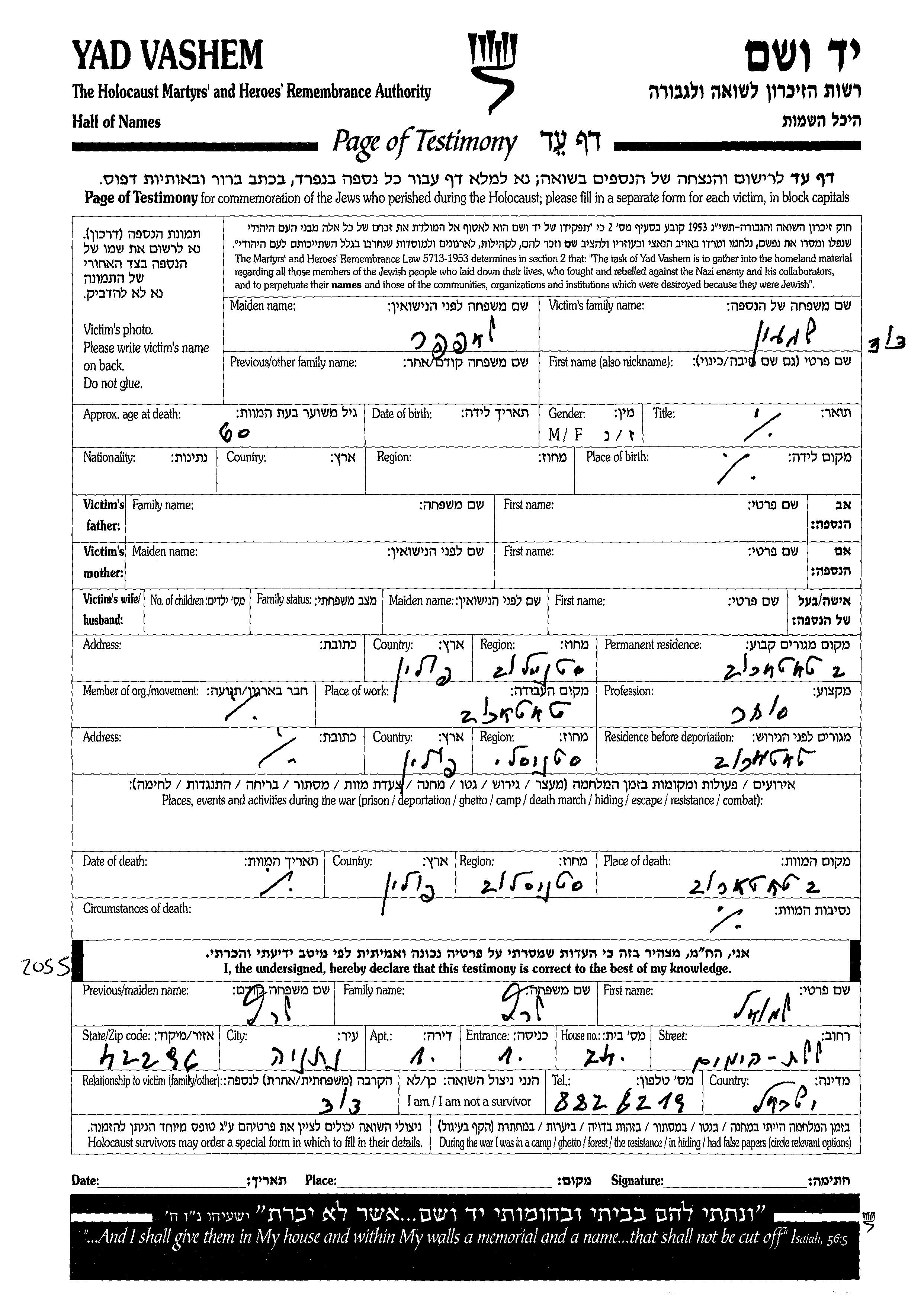 Shimon Shaffer. He was a merchant. Prior to WWII he lived in Tatarow, Poland. During the war he was in Tatarow, Poland. Shimon was murdered in the Shoah. Place of death: Tatarow, Poland.