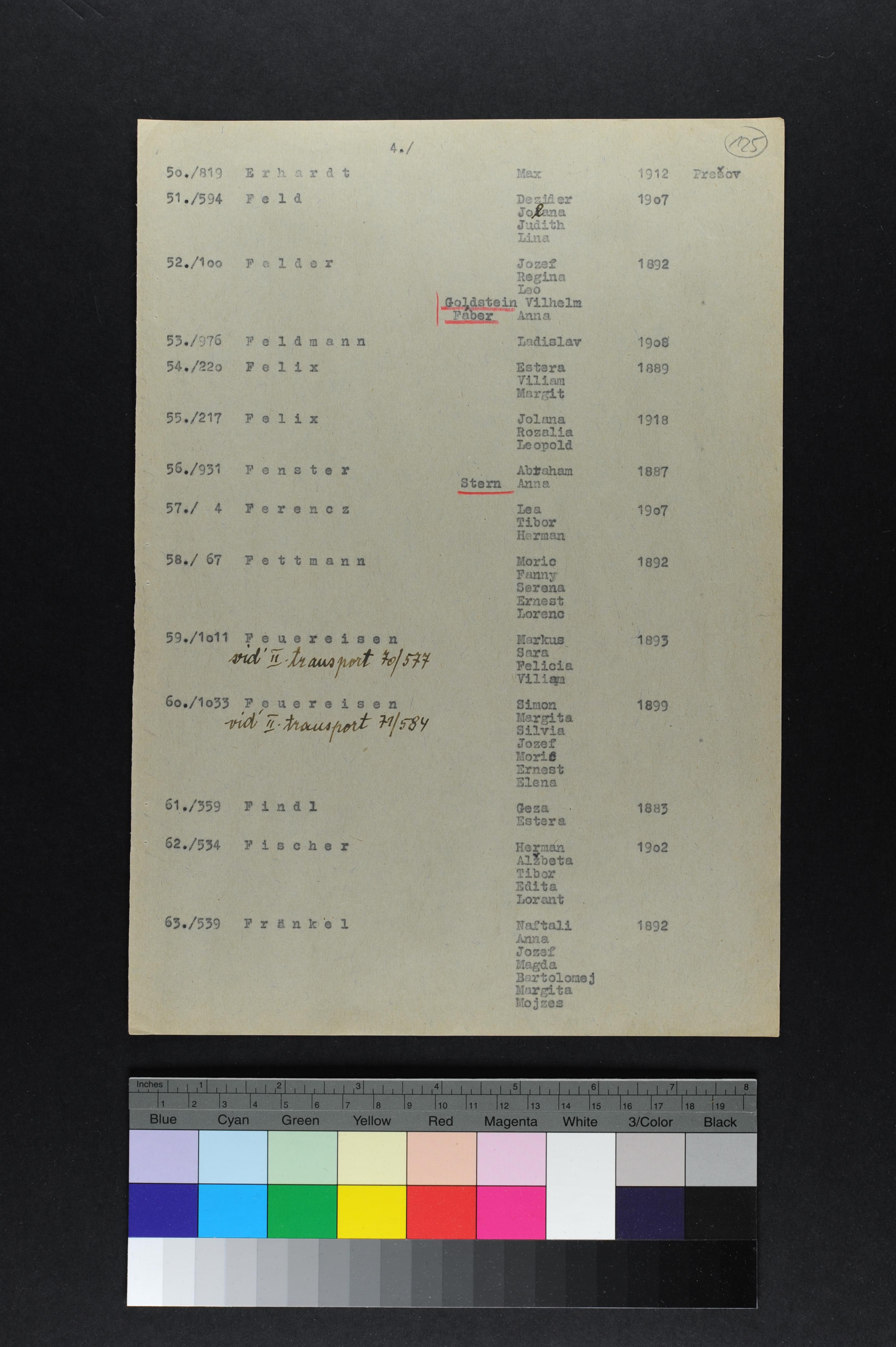List of Jews from Presov and settlements in the Presov vicinity deported to the Lublin region, 12/05/1942