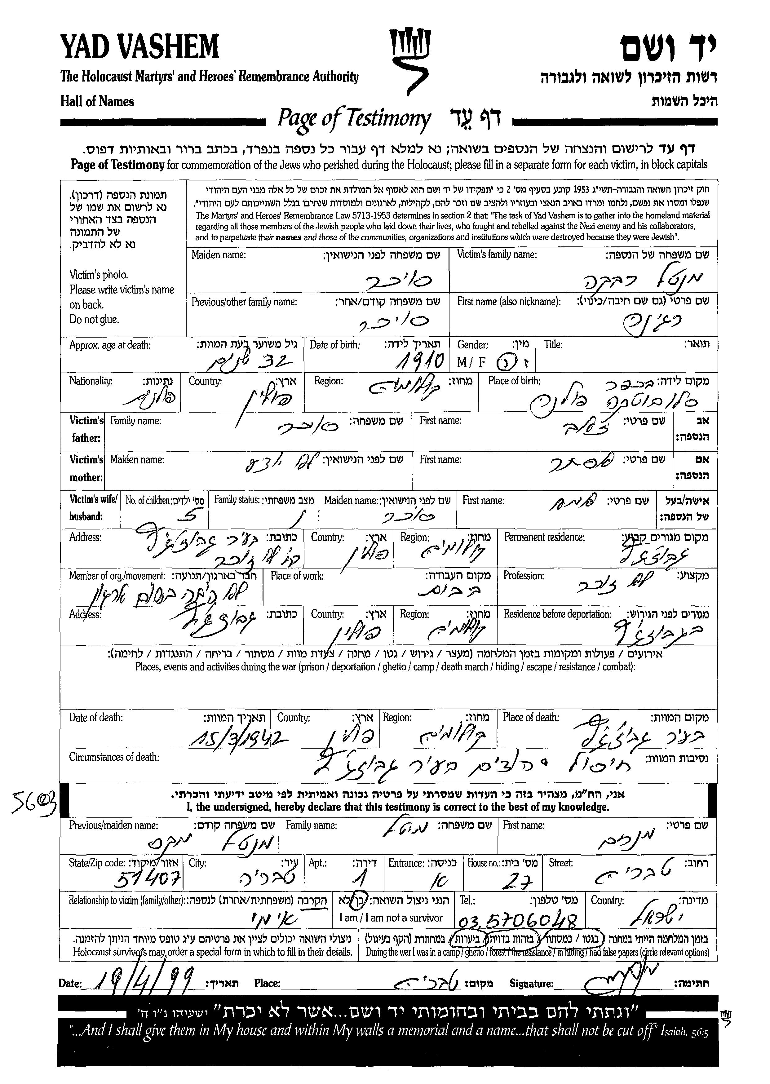 Yad Vashem - Pages of Testimony Names Memorial Collection