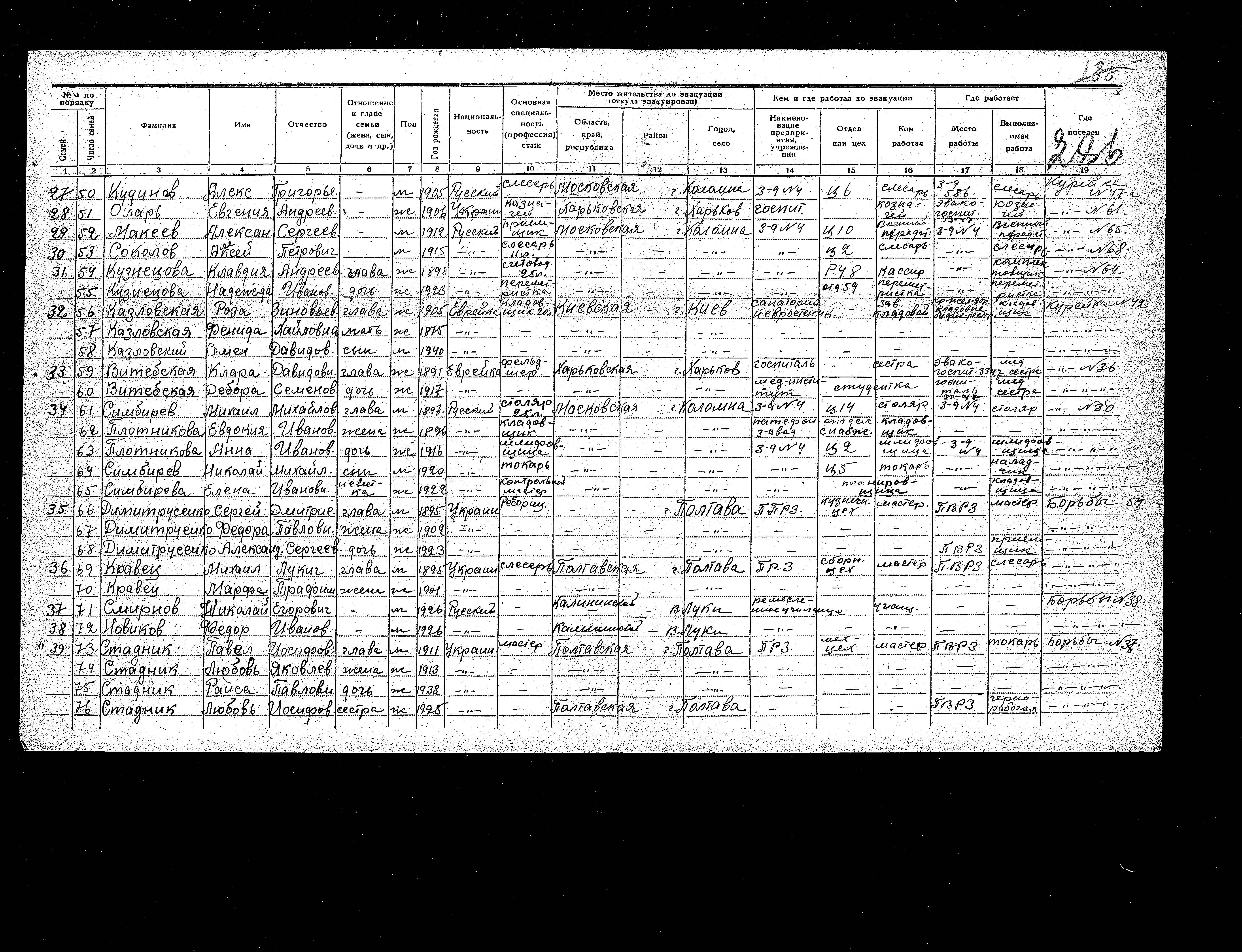 Roza Kazlovskaya was born, 1905 to Zinovi and Fenida. She was a warehouseman. Prior to WWII she lived in Kiev, Ukraine (USSR). During the war she was in Krasnoyarsk, Russia (USSR). Roza was registered following the evacuation/ in the interior of the Soviet Union.