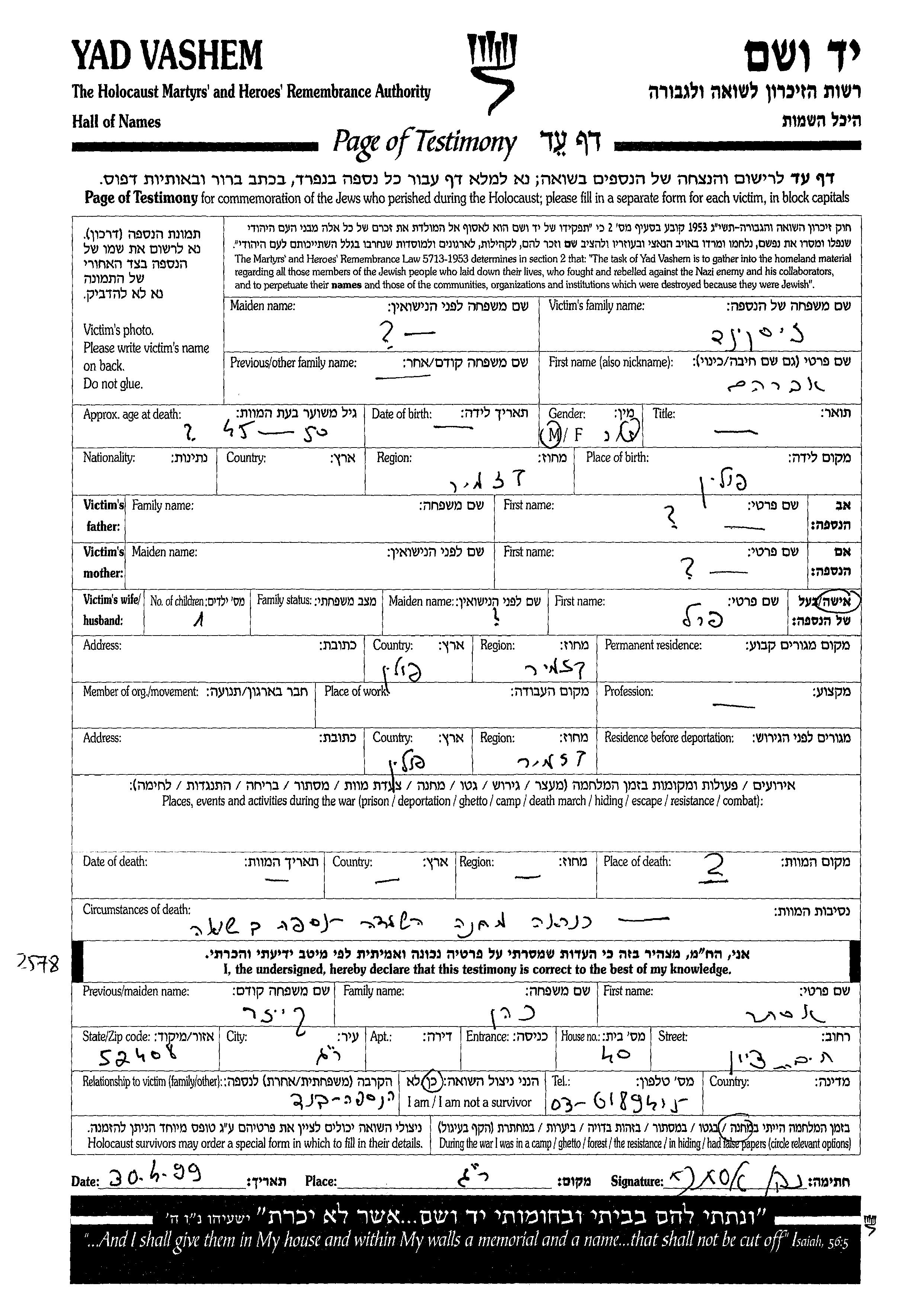 Yad Vashem - Pages of Testimony Names Memorial Collection