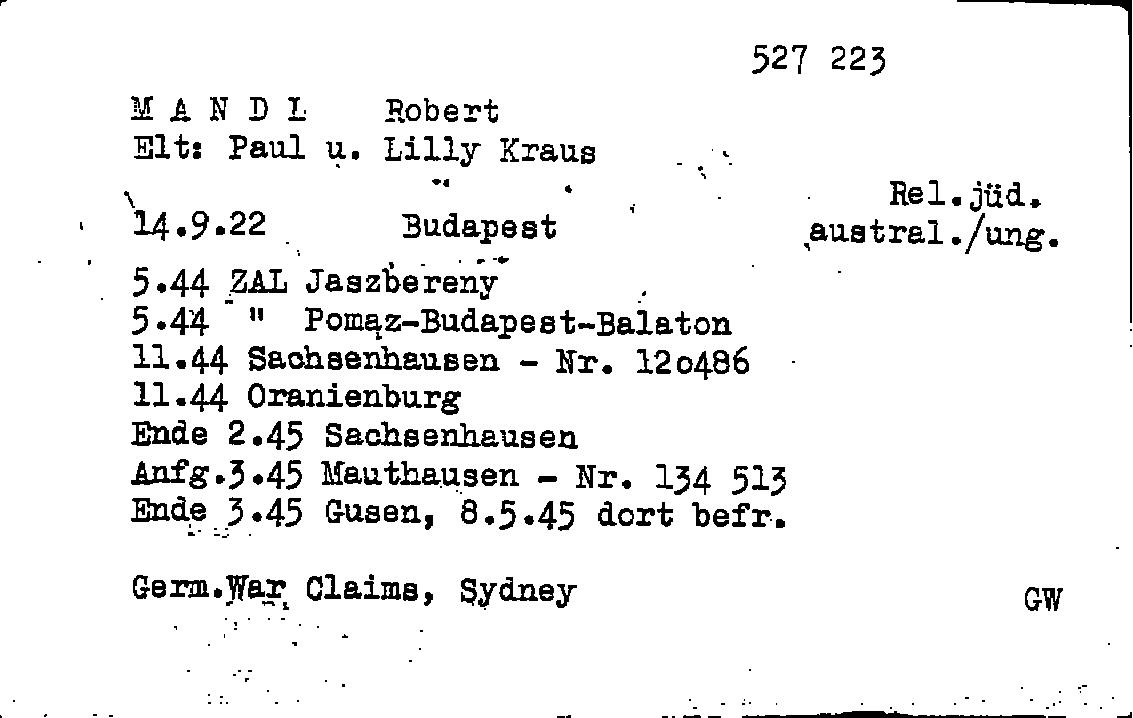 | Mandl | Robert | 1922 | Budapest, Hungría | ficha personal - campo de Mauthausen |