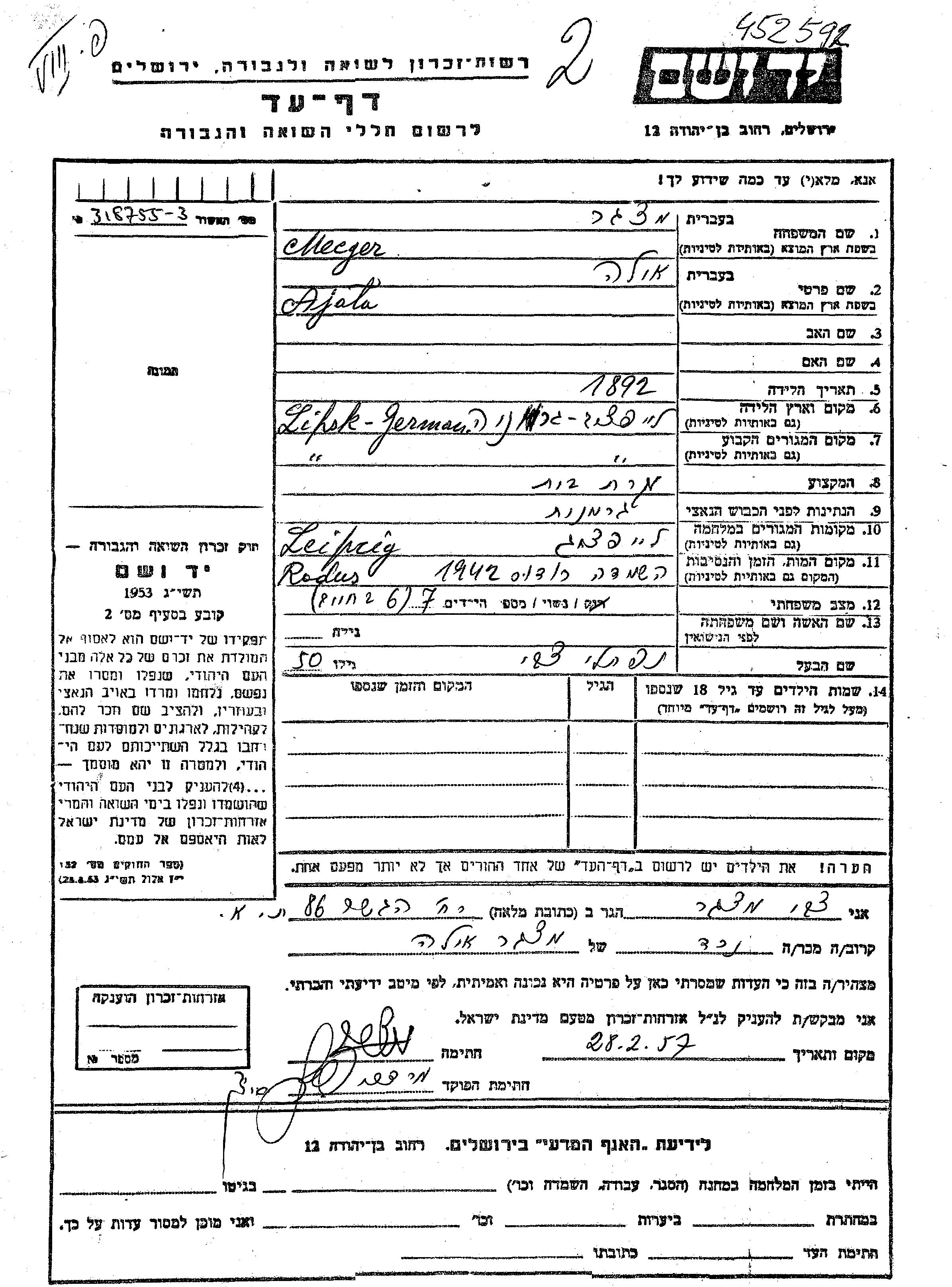 Yad Vashem - Colección conmemorativa de Hojas de Testimonio