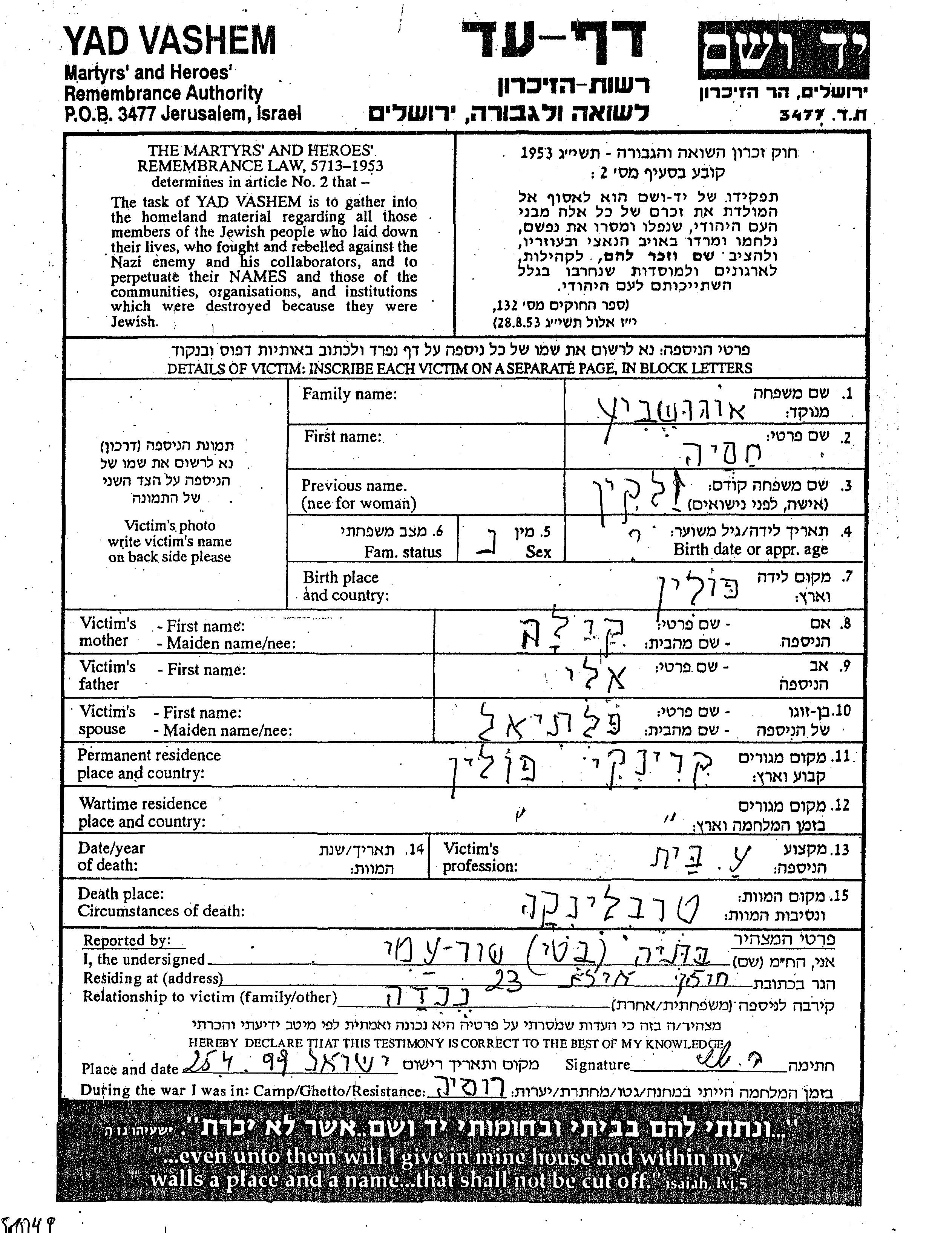 Ogushevitz Khasia Krinki, Polonia Hoja de Testimonio