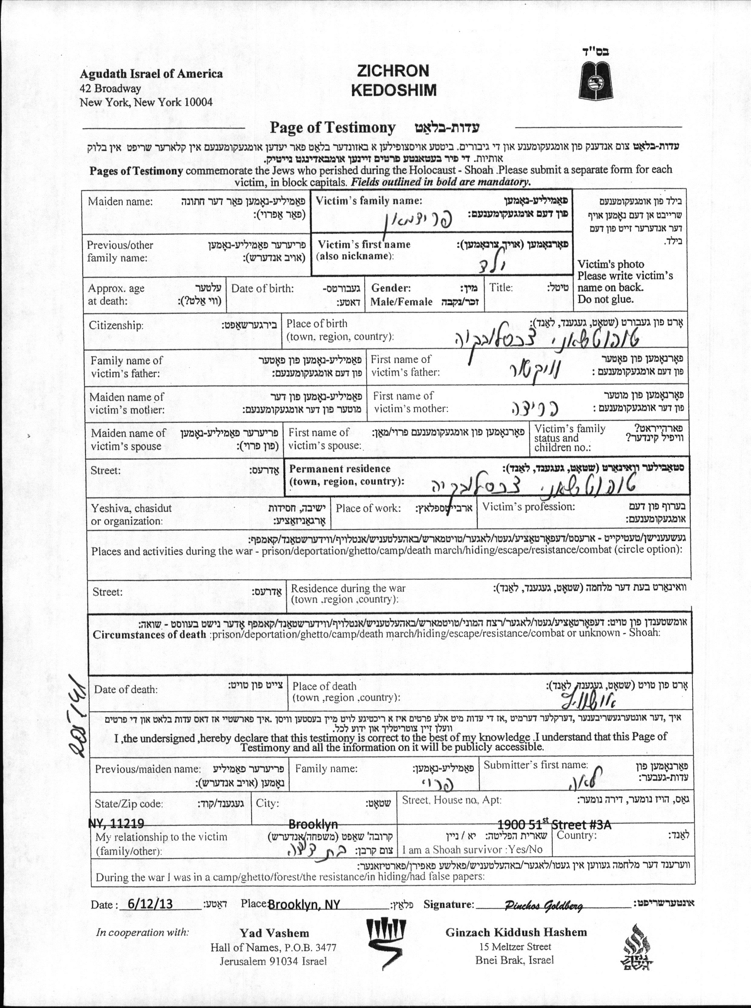 nombre desconocido Fridman nació en Topocani, Checoslovaquia, Viktor y Frida. Era Niñoa. Antes de la segunda guerra mundial vivía en Topocani, Checoslovaquia. Fue asesinado/a durante la Shoá. Lugar de la muerte: Auschwitz, Polonia.