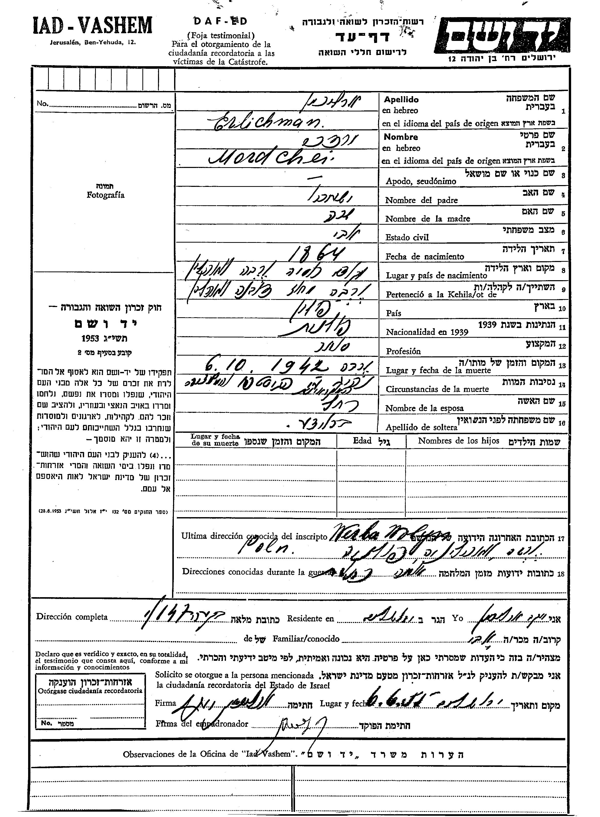 Yad Vashem - Colección conmemorativa de Hojas de Testimonio