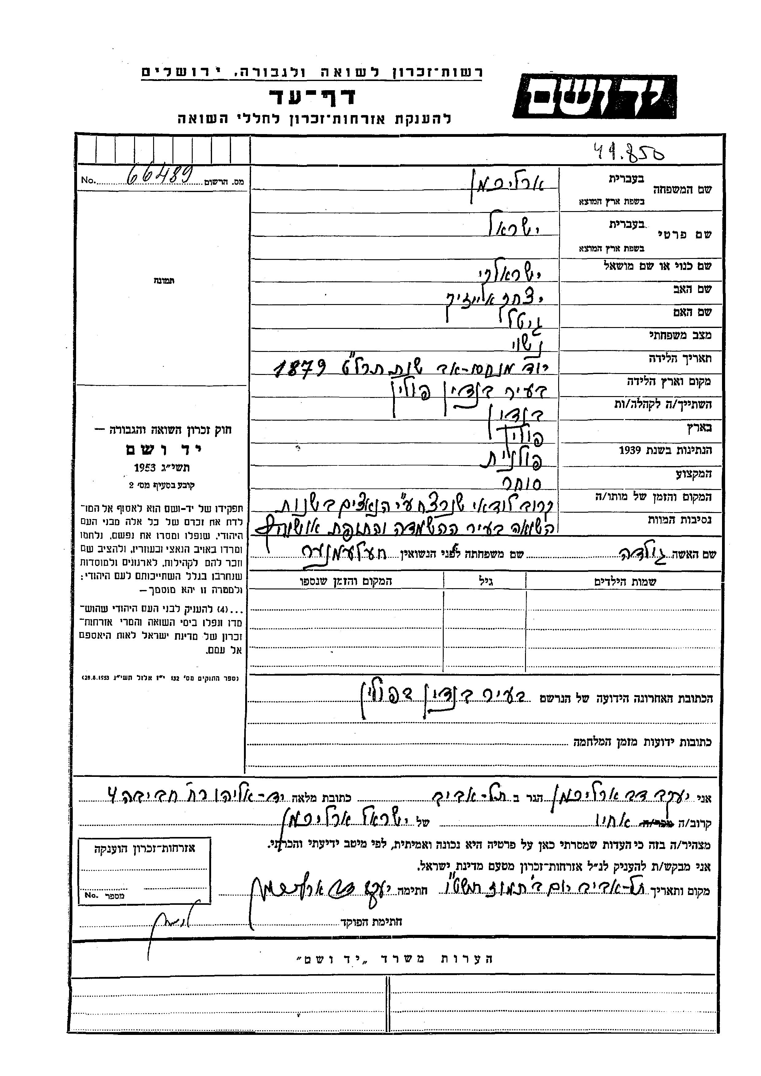 Yad Vashem - Colección conmemorativa de Hojas de Testimonio