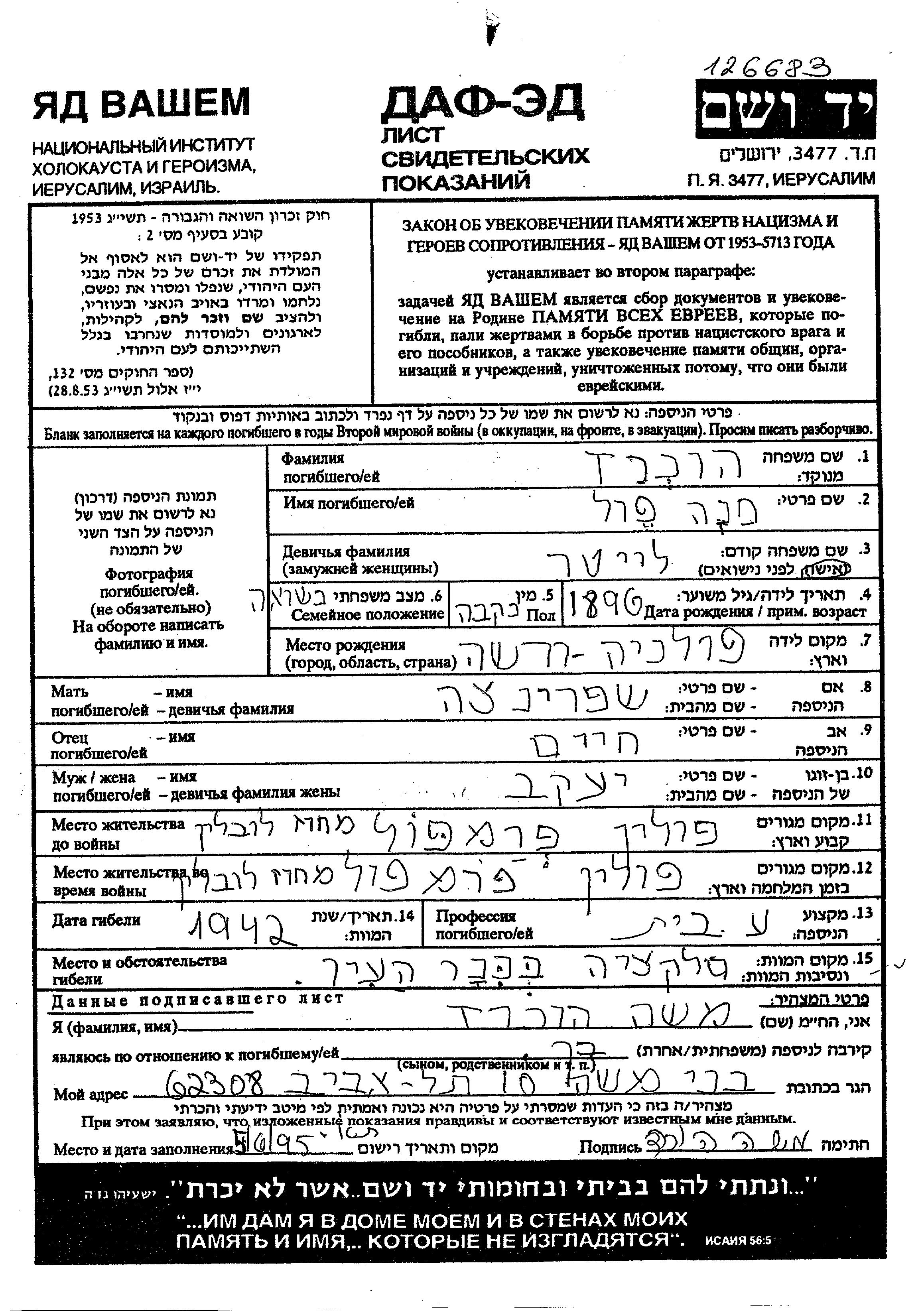 Hochrad Chana Frampol, Polonia Hoja de Testimonio