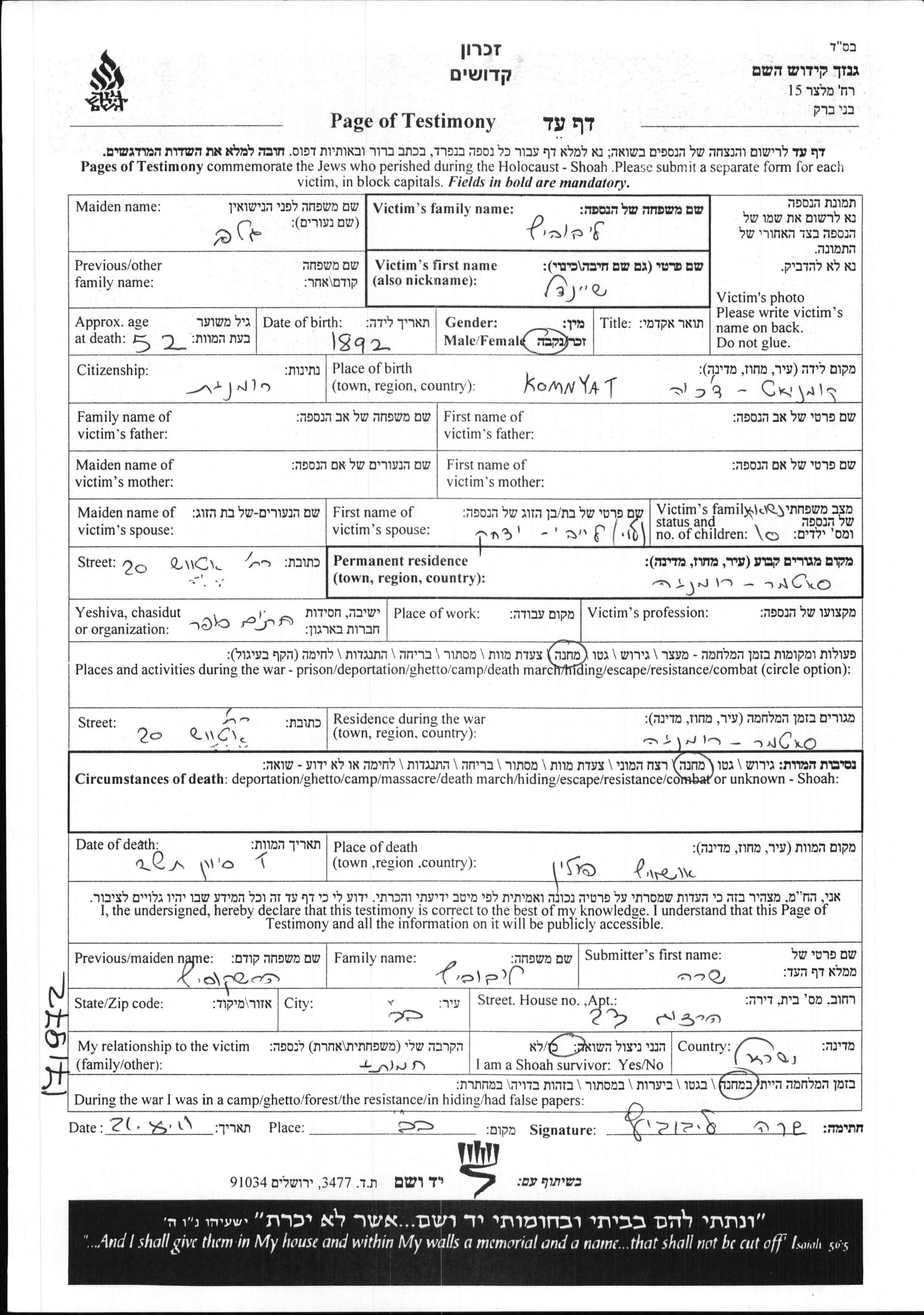 Durante la Guerra/Shoá: