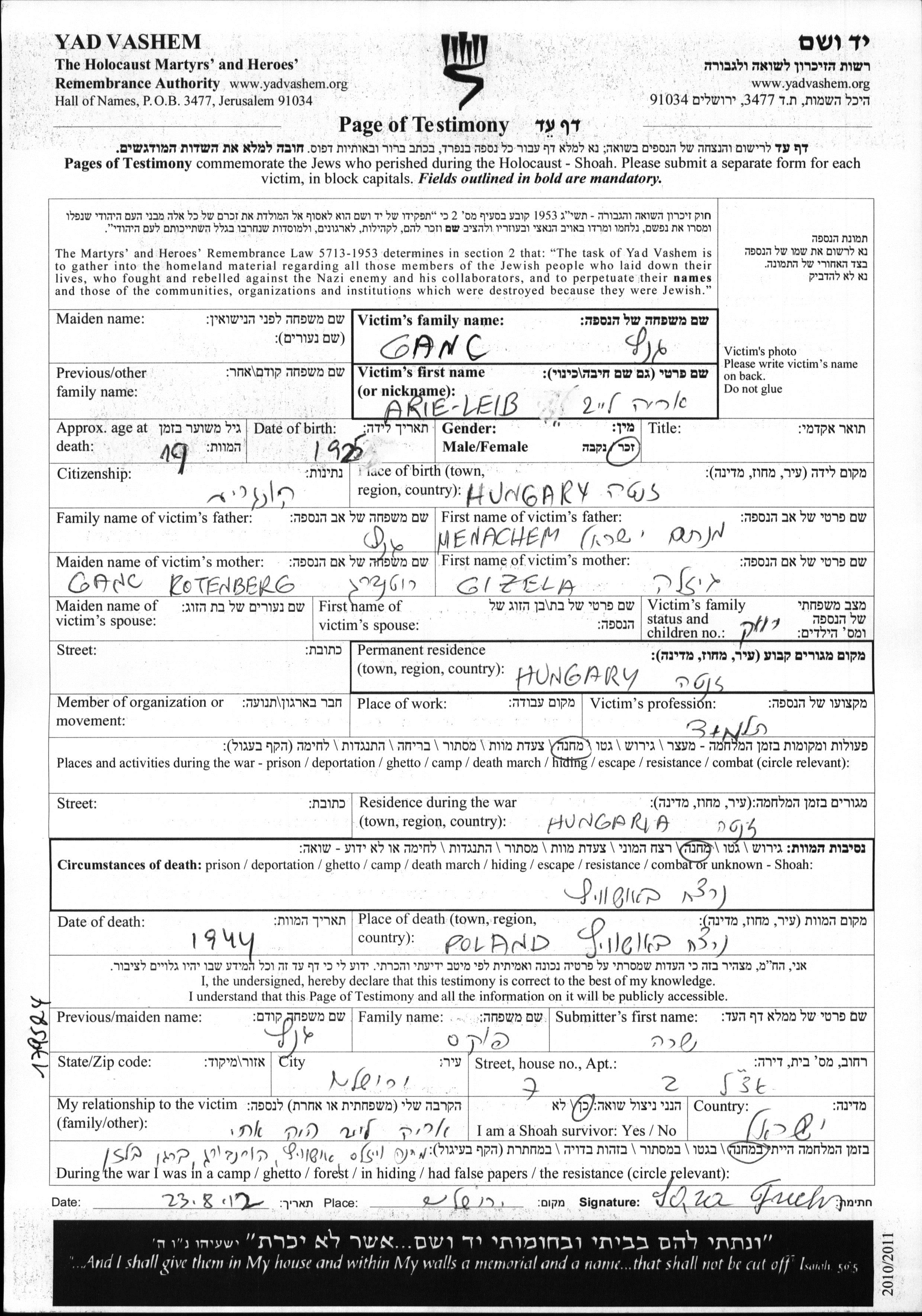 Durante la Guerra/Shoá: