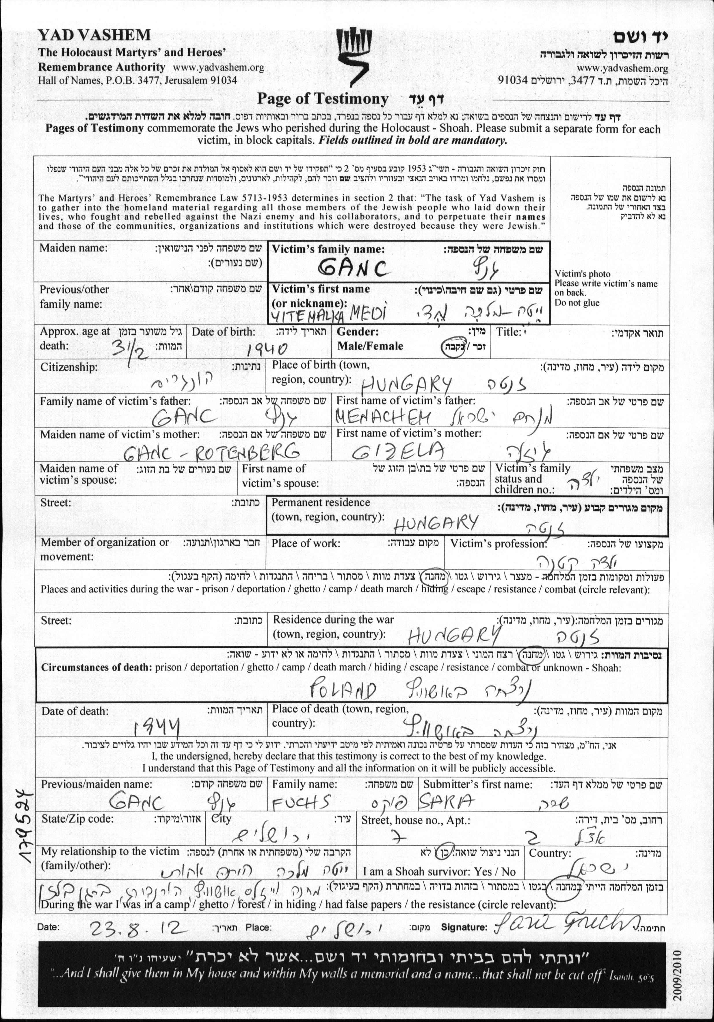 Búsqueda del firmante de la Hoja de Testimonio, según su nombre, incluyendo diminutivo u apodo