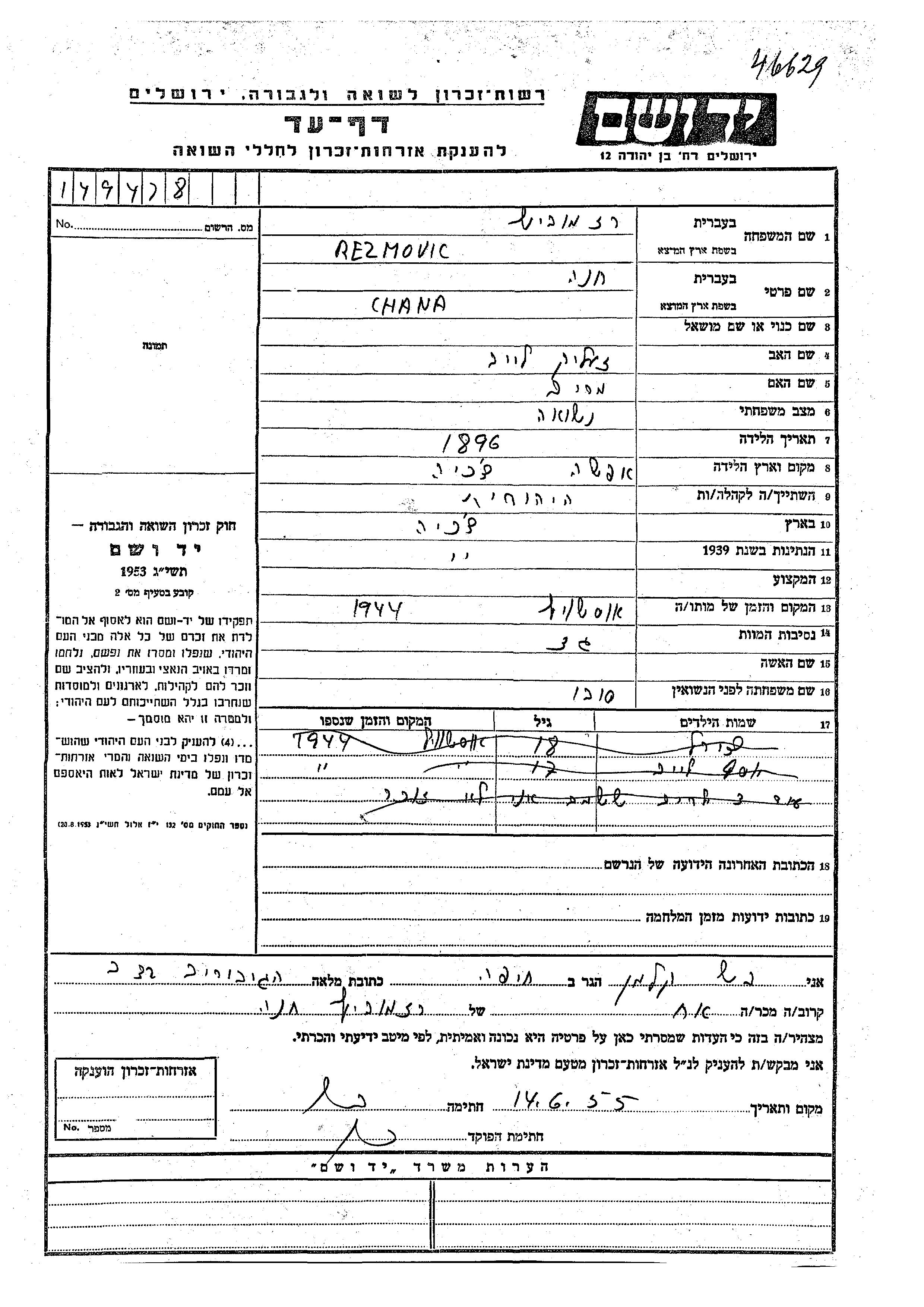 Yad Vashem - Colección conmemorativa de Hojas de Testimonio