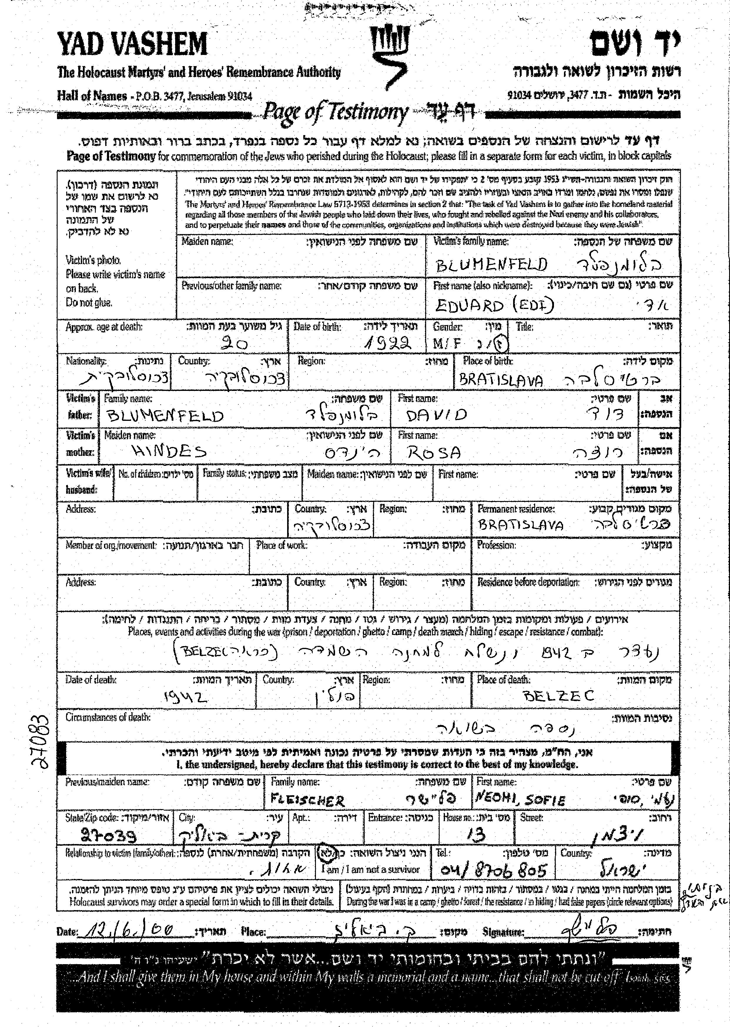 Durante la Guerra/Shoá: