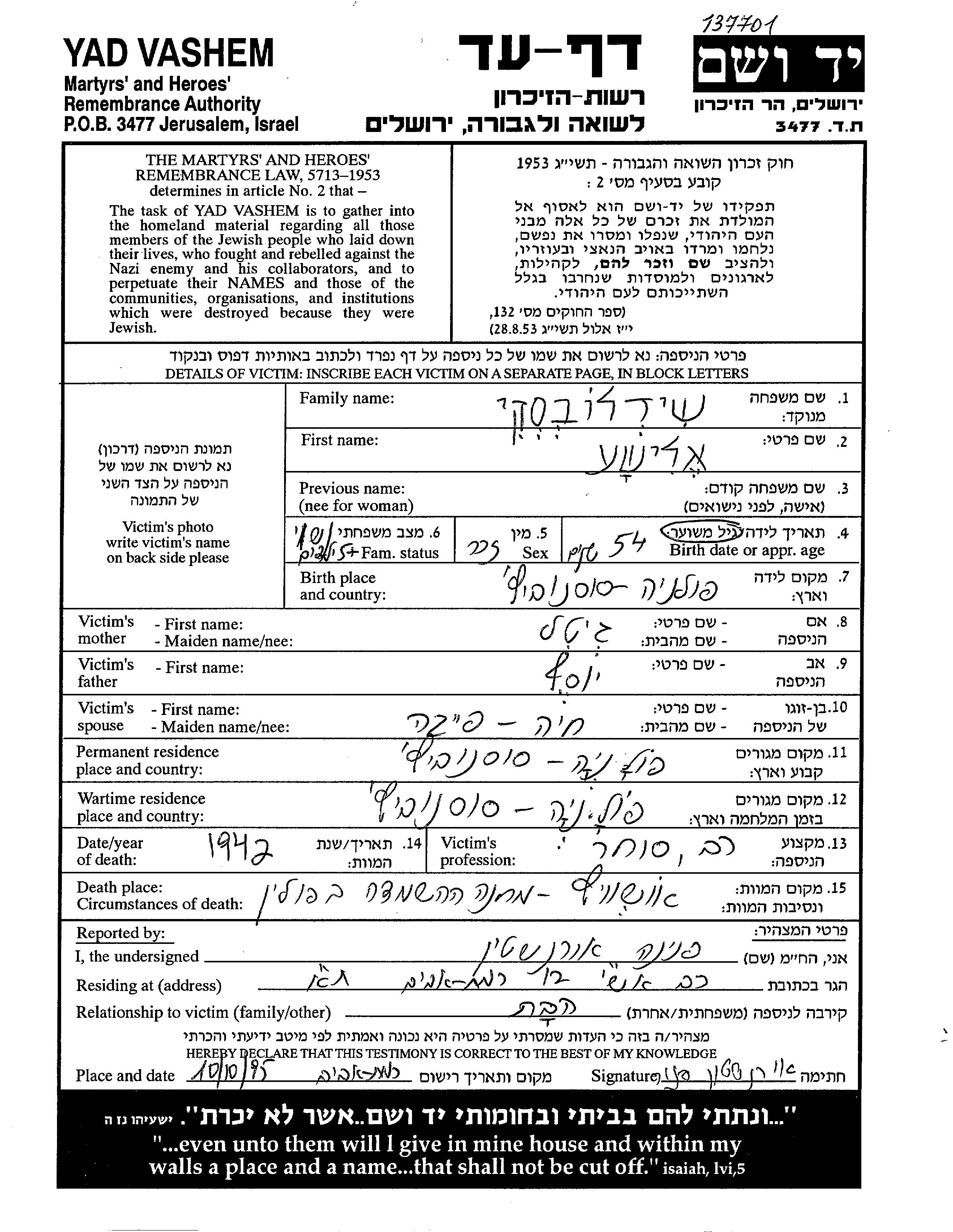 Yad Vashem - Colección conmemorativa de Hojas de Testimonio