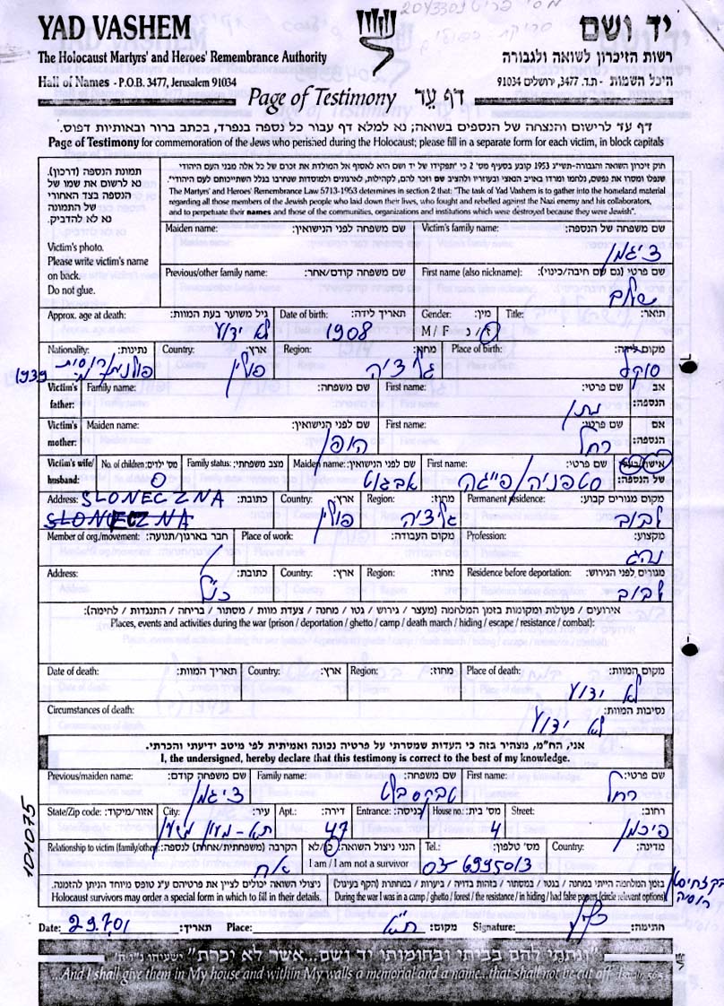 Yad Vashem - Colección conmemorativa de Hojas de Testimonio